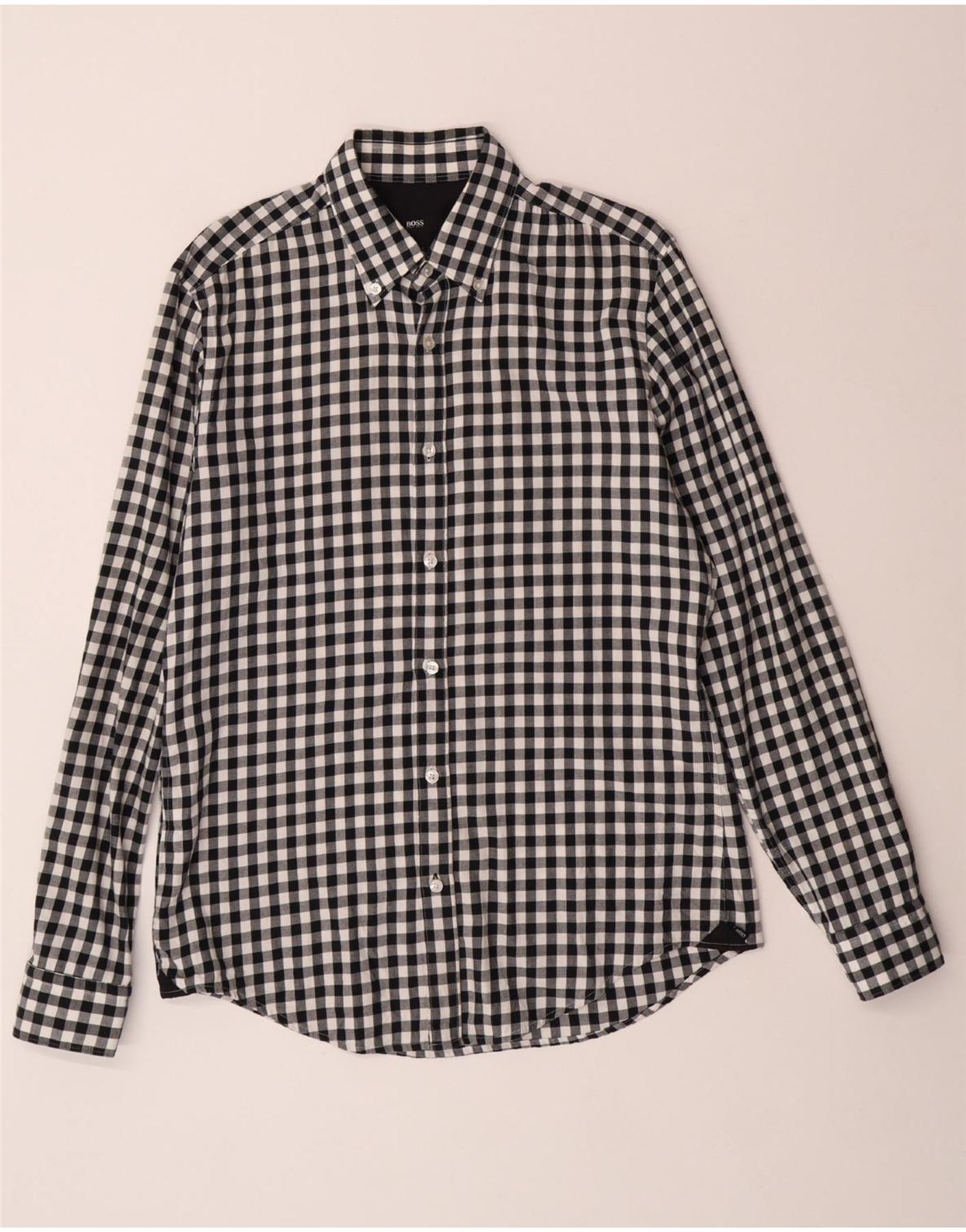 HUGO BOSS Herre Slim Fit Flanelskjorte Medium Sort Gingham Bomuld