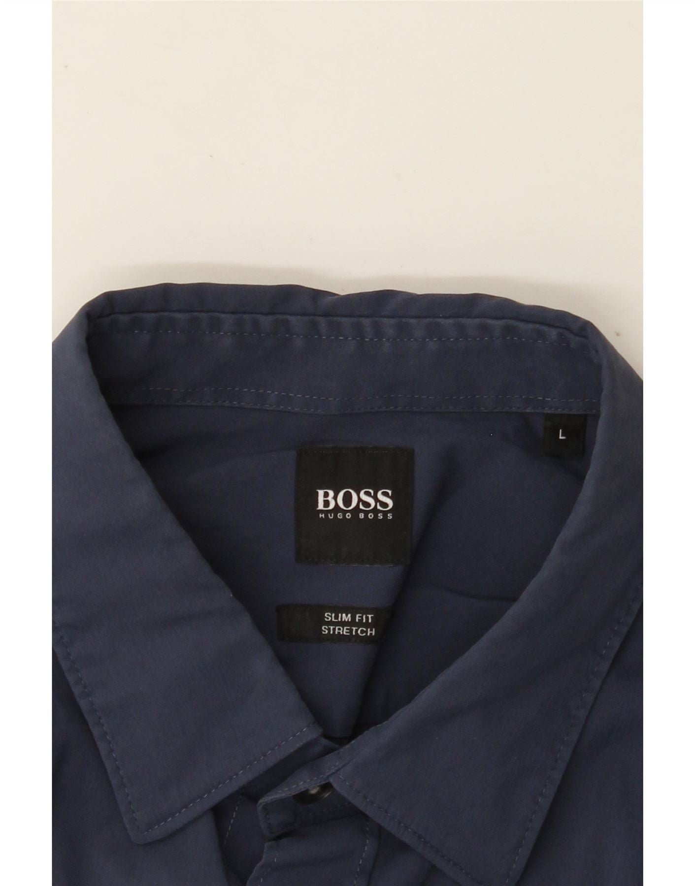 HUGO BOSS Herre Slim Fit Skjorte Large Navy Blue