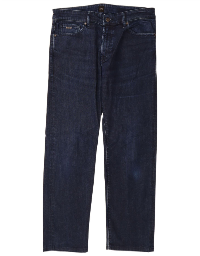 HUGO BOSS Mens Straight Jeans W32 L30 Navy Blue Cotton