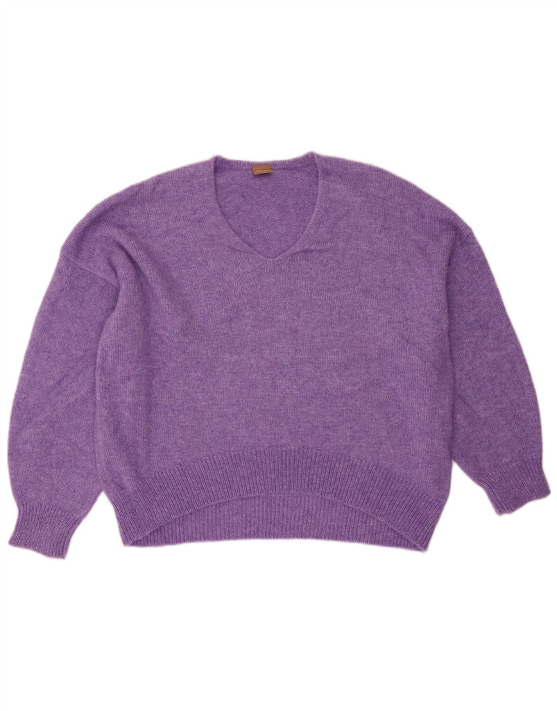 HUGO BOSS Womens Oversized V-Neck Jumper Sweater UK 14 Medium Purple