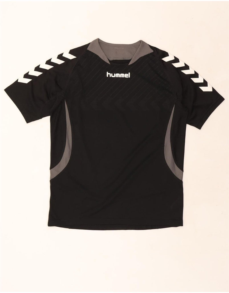 HUMMEL Mens Graphic T-Shirt Top Medium Black Colourblock Polyester
