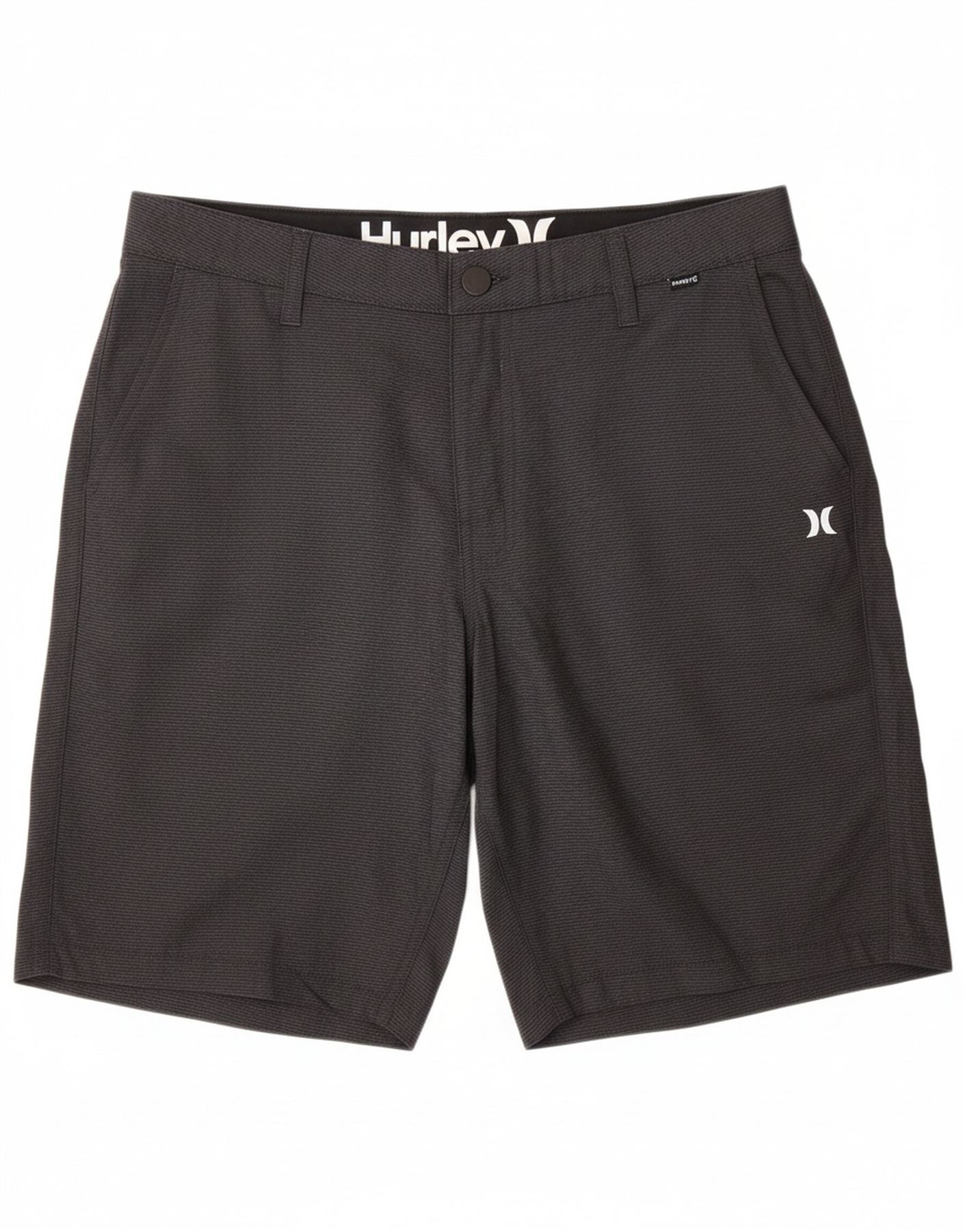 - AI Description: This Hurley mens Casual Shorts are crafted from lightweight 100 percent polyester woven fabric. A subtle pinstripe pattern adds modern visual interest. They feature a regular fit and a secure button closure. Practical pockets offer functionality. The fabric offers stretch for comfort and ease of movement. A discreet logo provides a signature touch.
