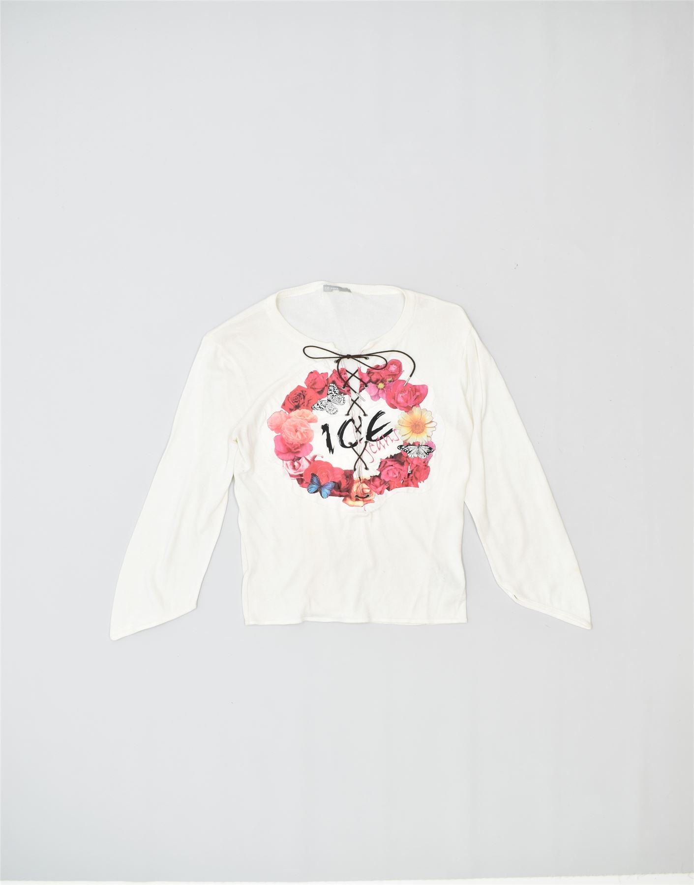 ICEBERG Dame grafisk rund hals sweater UK 10 Small White Floral