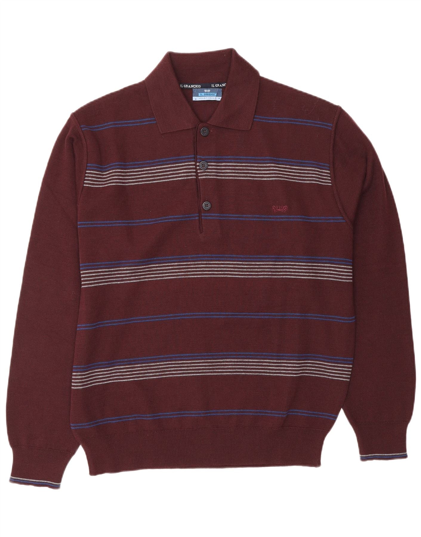 IL GRANCHIO Herre Polo Neck Jumper Sweater Stor rødbrun stribet uld