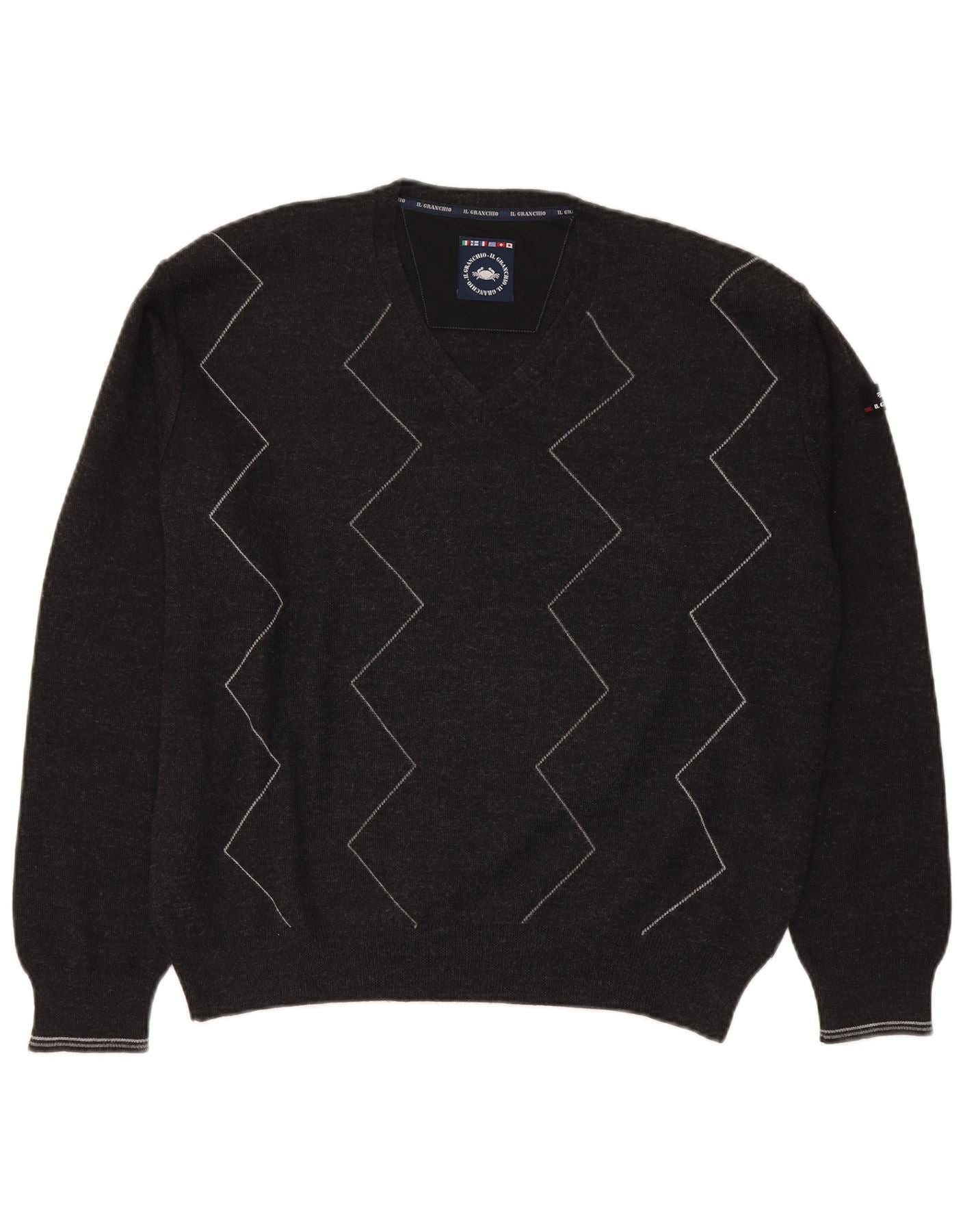 Il Granchio Herre V-hals sweater Stor Grå Geometrisk Ny Uld