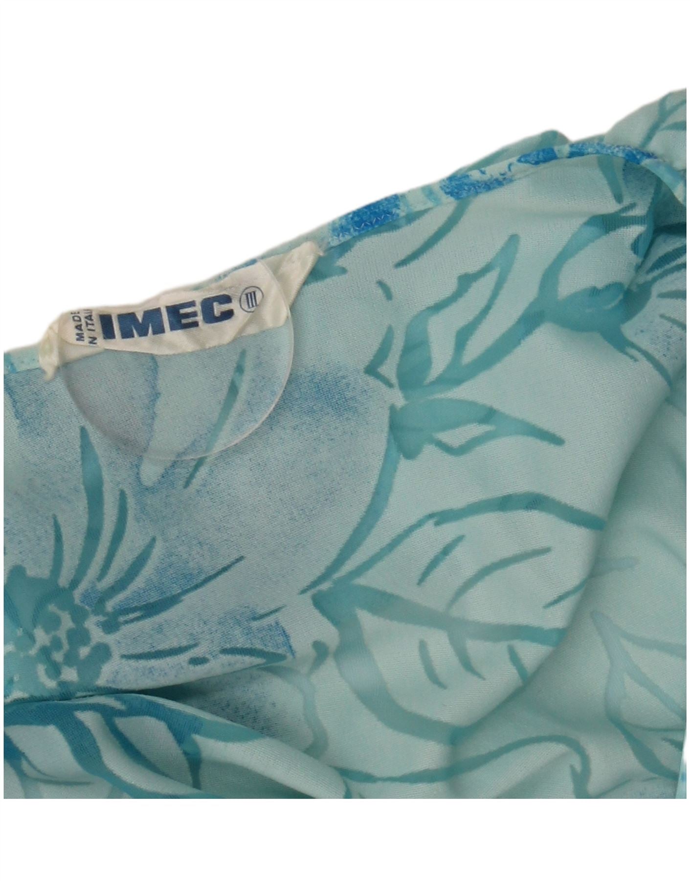 Imec Dame 3/4 Ærmet Se Through A-Line Kjole UK 12 Medium Blue Floral