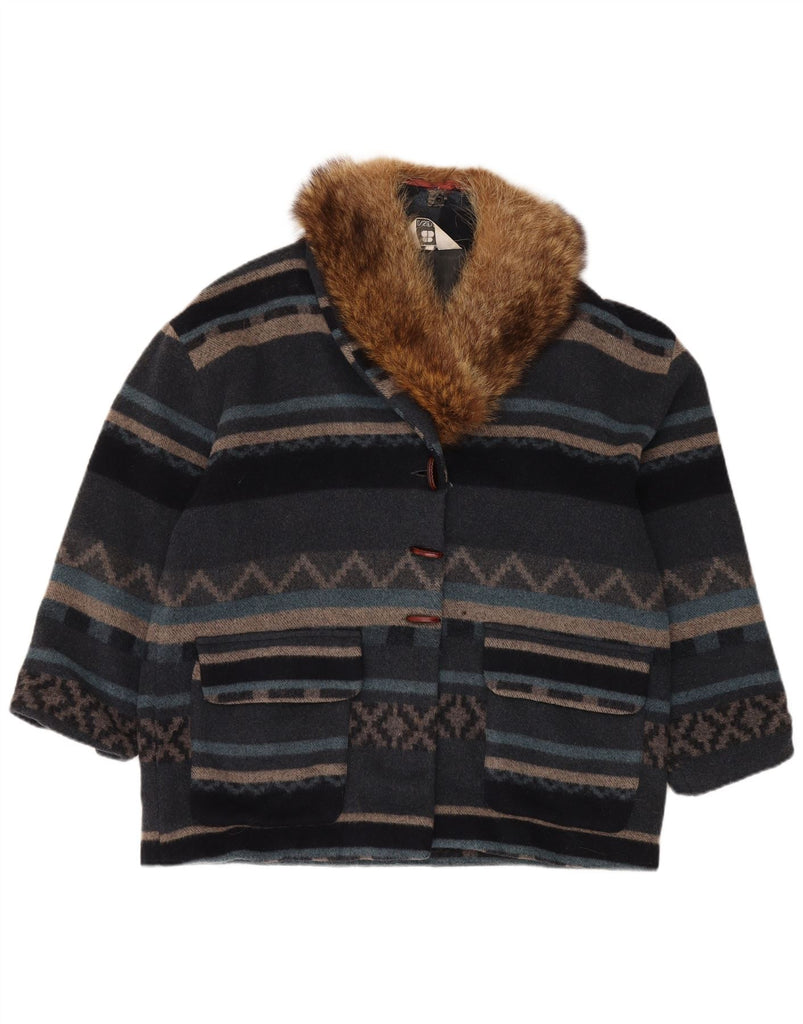 INSIEME Dame Duffle Jacket UK 16 Medium Flerfarvet Stribet Aztec