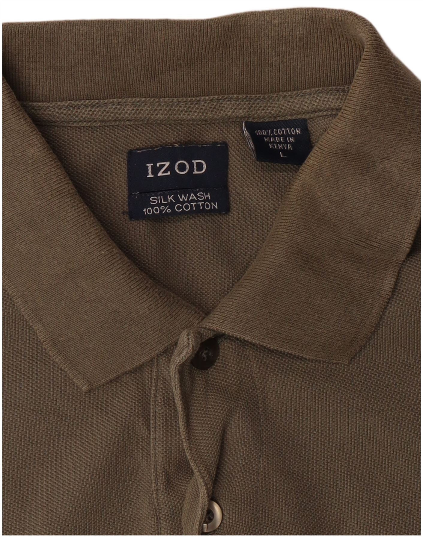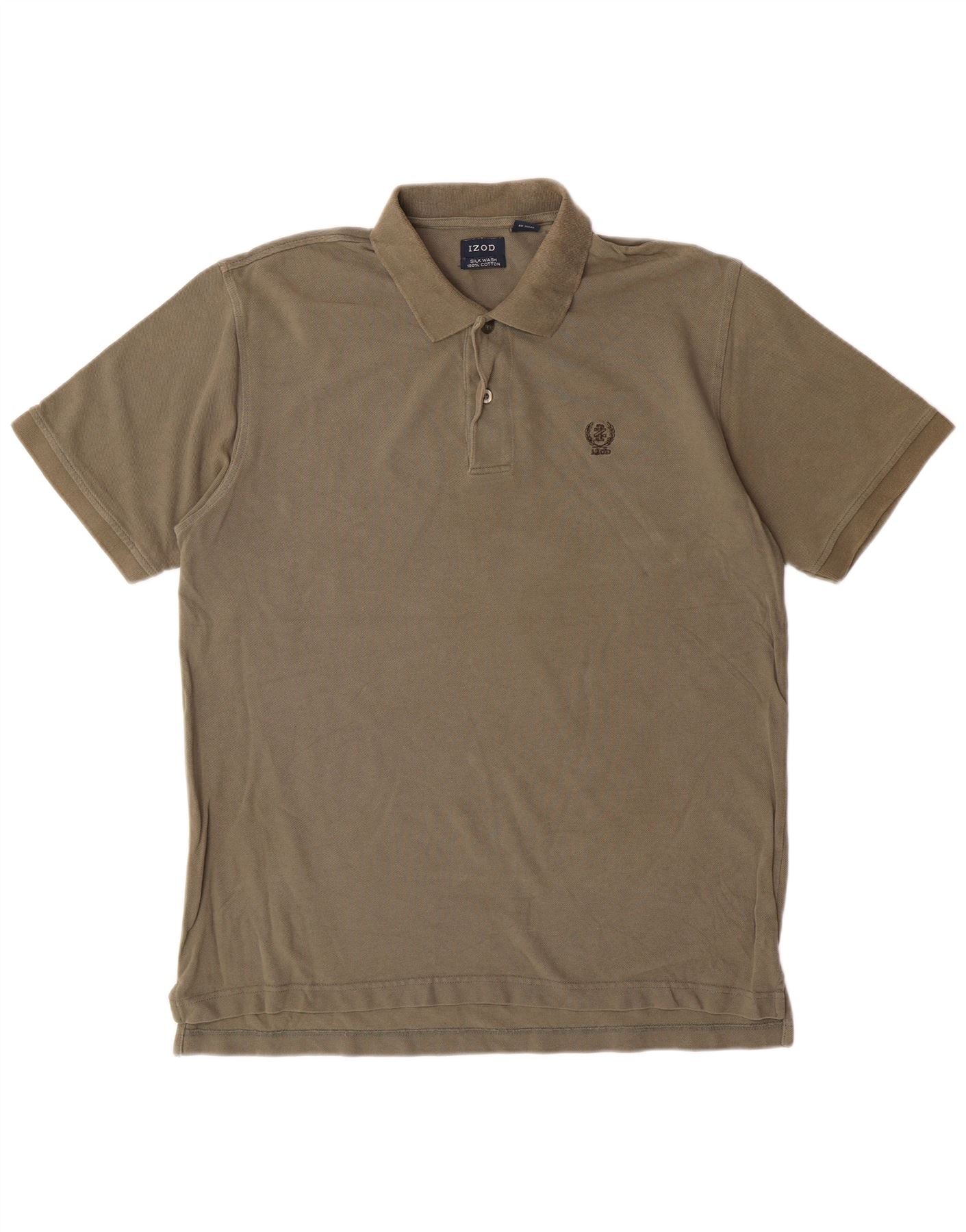 - AI beskrivelse: Denne Izod herre poloshirt er lavet af blød 100 procent bomuldsstrik i en alsidig khaki nuance. Den har en klassisk halsudskæring og en to-knaps stolpe for et tidløst look. Korte ærmer og en normal pasform sikrer behageligt slid. Et broderet logo på brystet tilføjer en subtil, signaturdetalje. Denne klassiske stil byder på ubesværet afslappet raffinement.