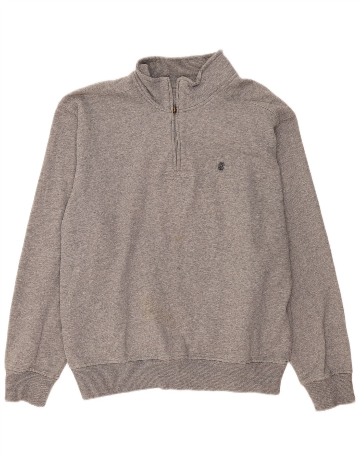 Izod Sweatshirt med lynlås til mænd, stor grå flækket bomuld