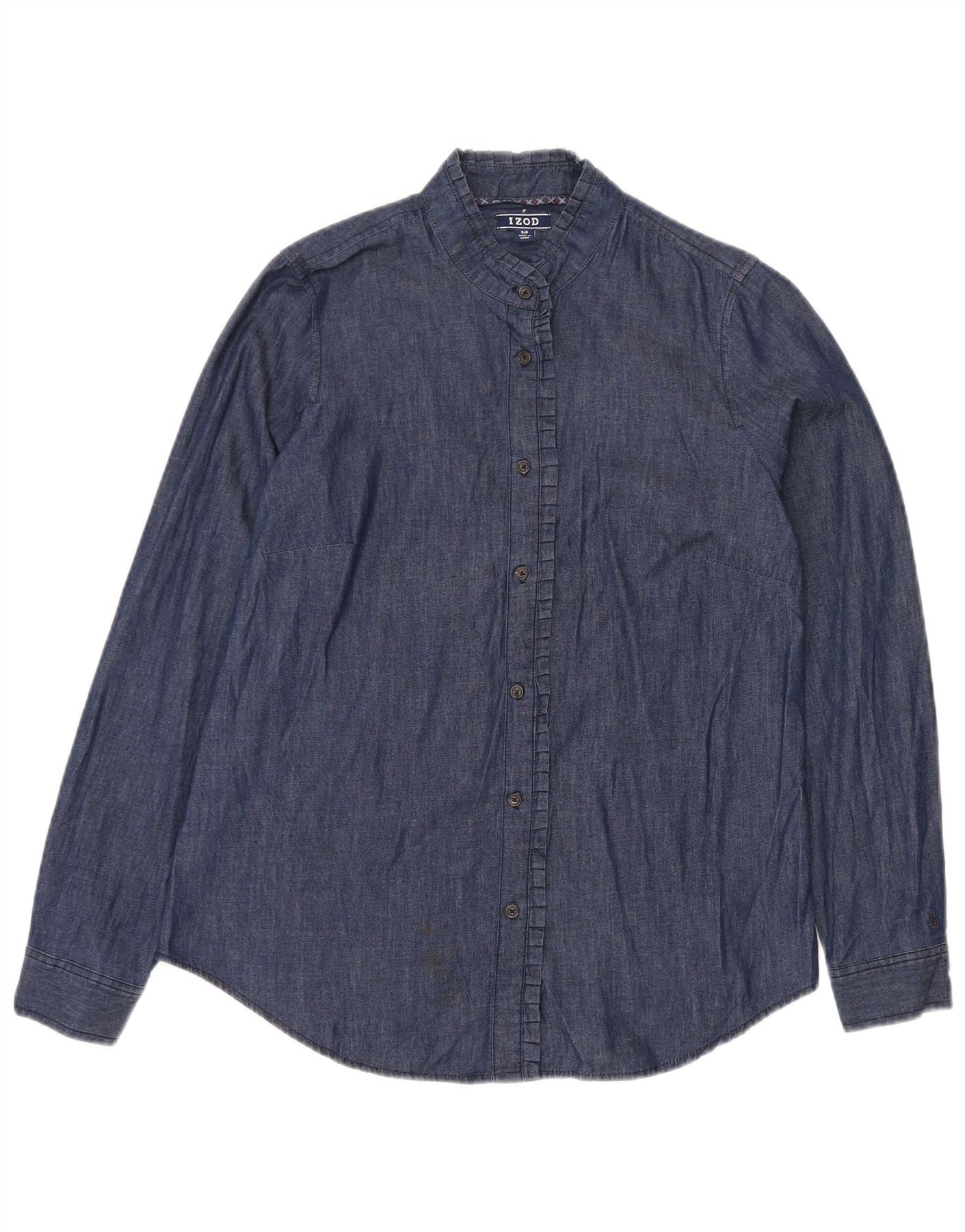 IZOD Dame Denim Shirt UK 10 Small Navy Blue Bomuld