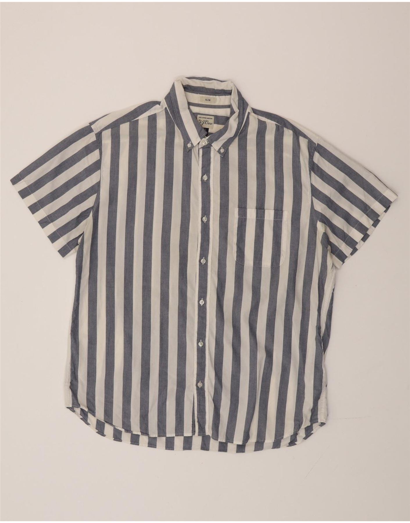 J. CREW Kortærmet slim skjorte til mænd XL blå stribet bomuld