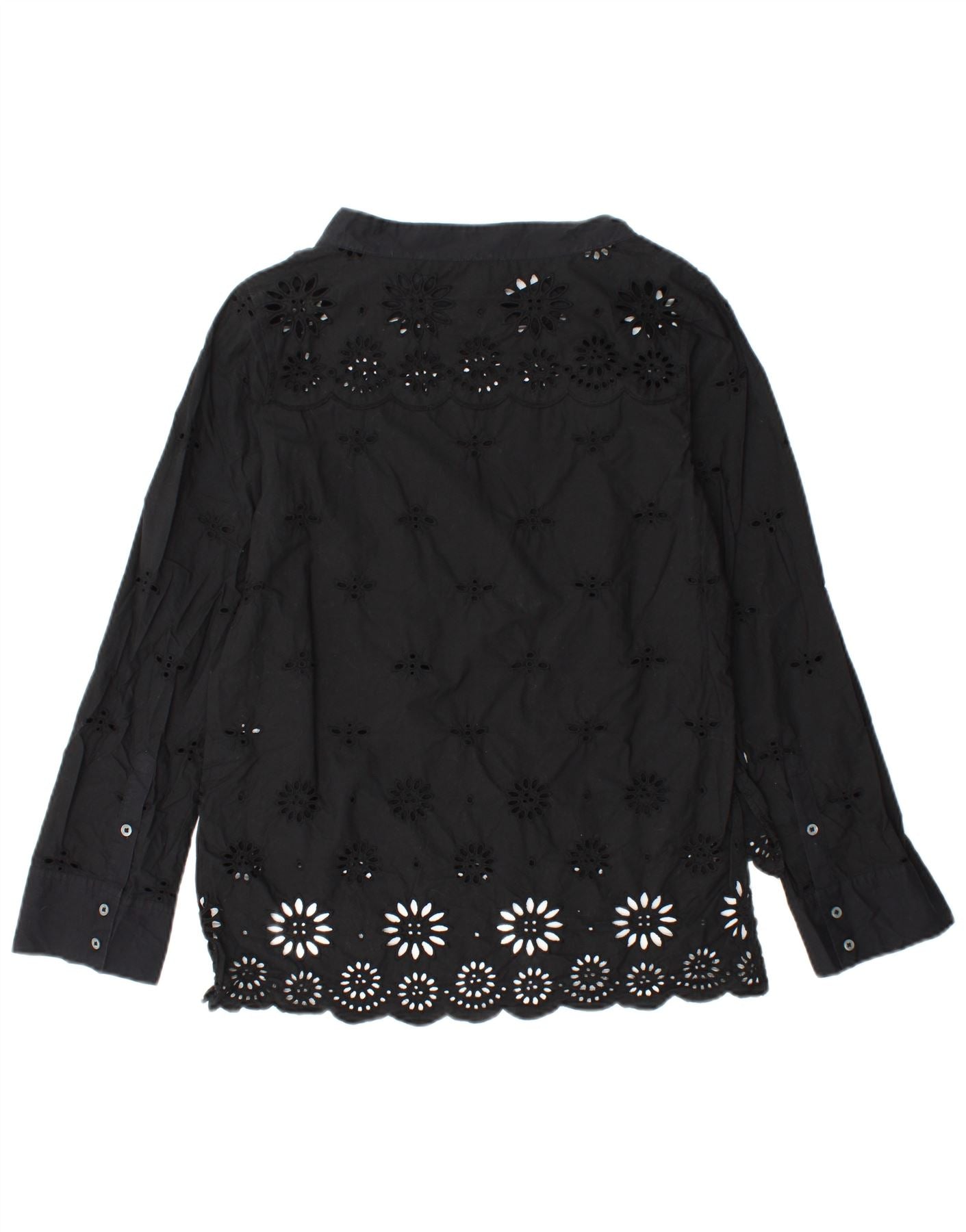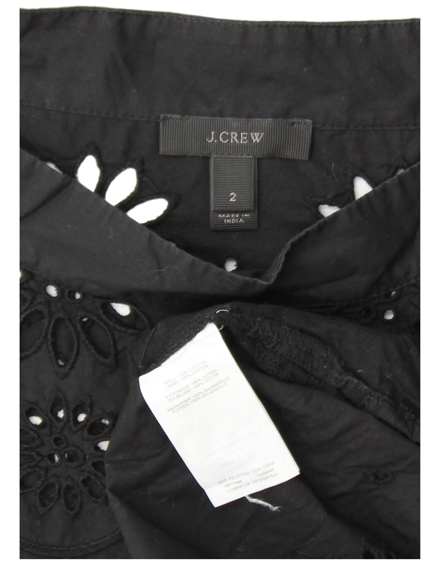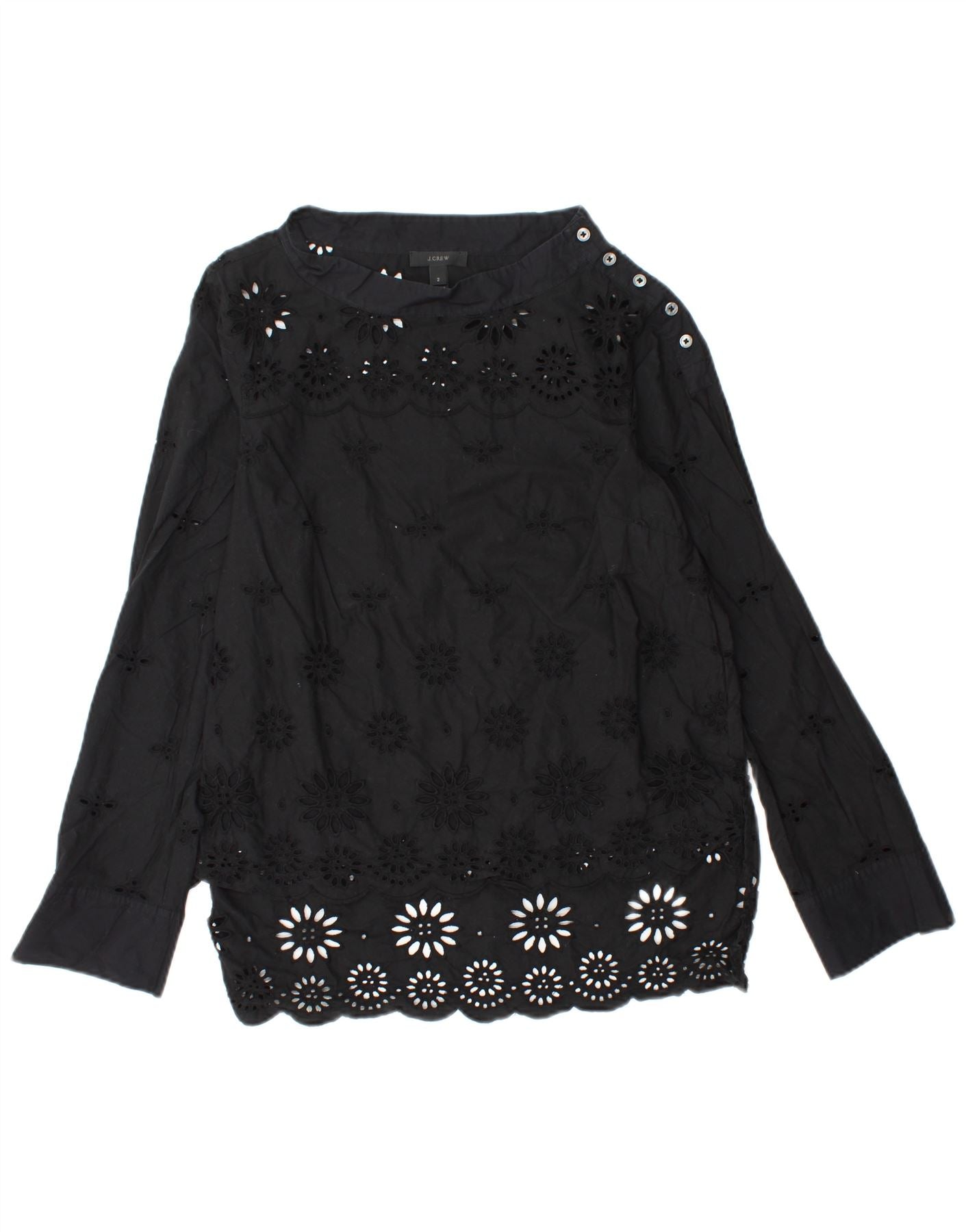 J. CREW Dame langærmet bluse top US 2 XS sort blomstret bomuld