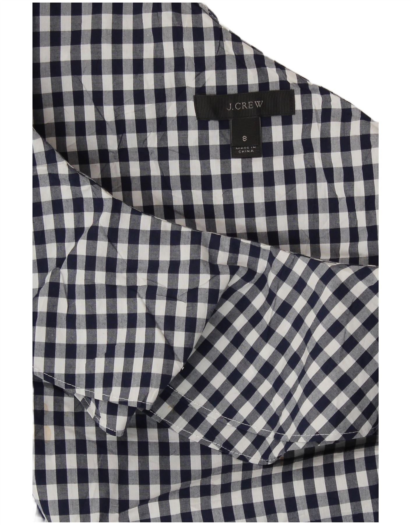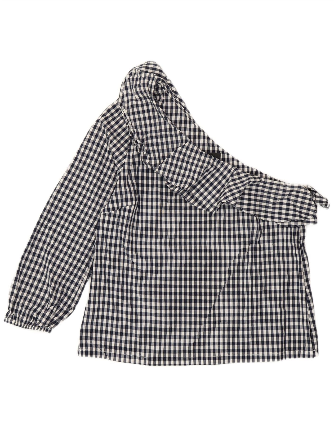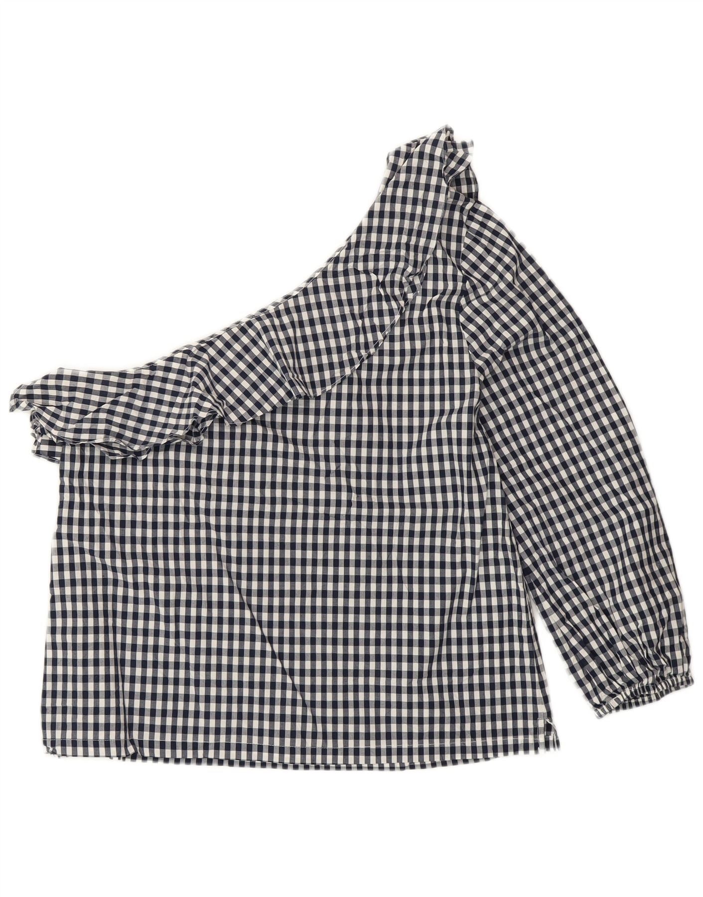 J. CREW Womens One Shoulder Top US 8 Medium Navy Blue Gingham Cotton