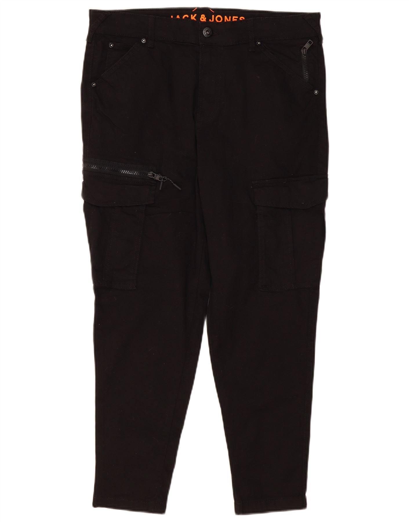 JACK & JONES Herre Cargo Cropped Bukser W34 L26 Sort Bomuld