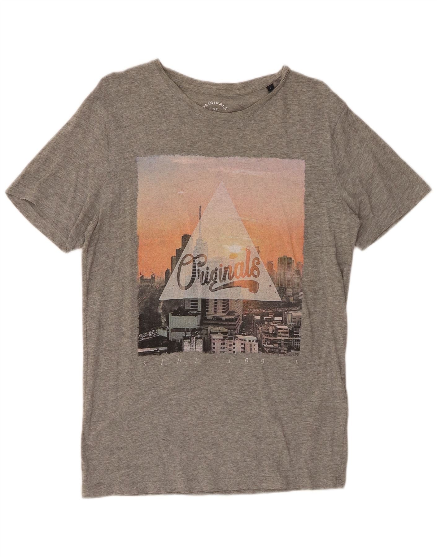 JACK & JONES Herre grafisk T-shirt Top Stor grå flækket bomuld