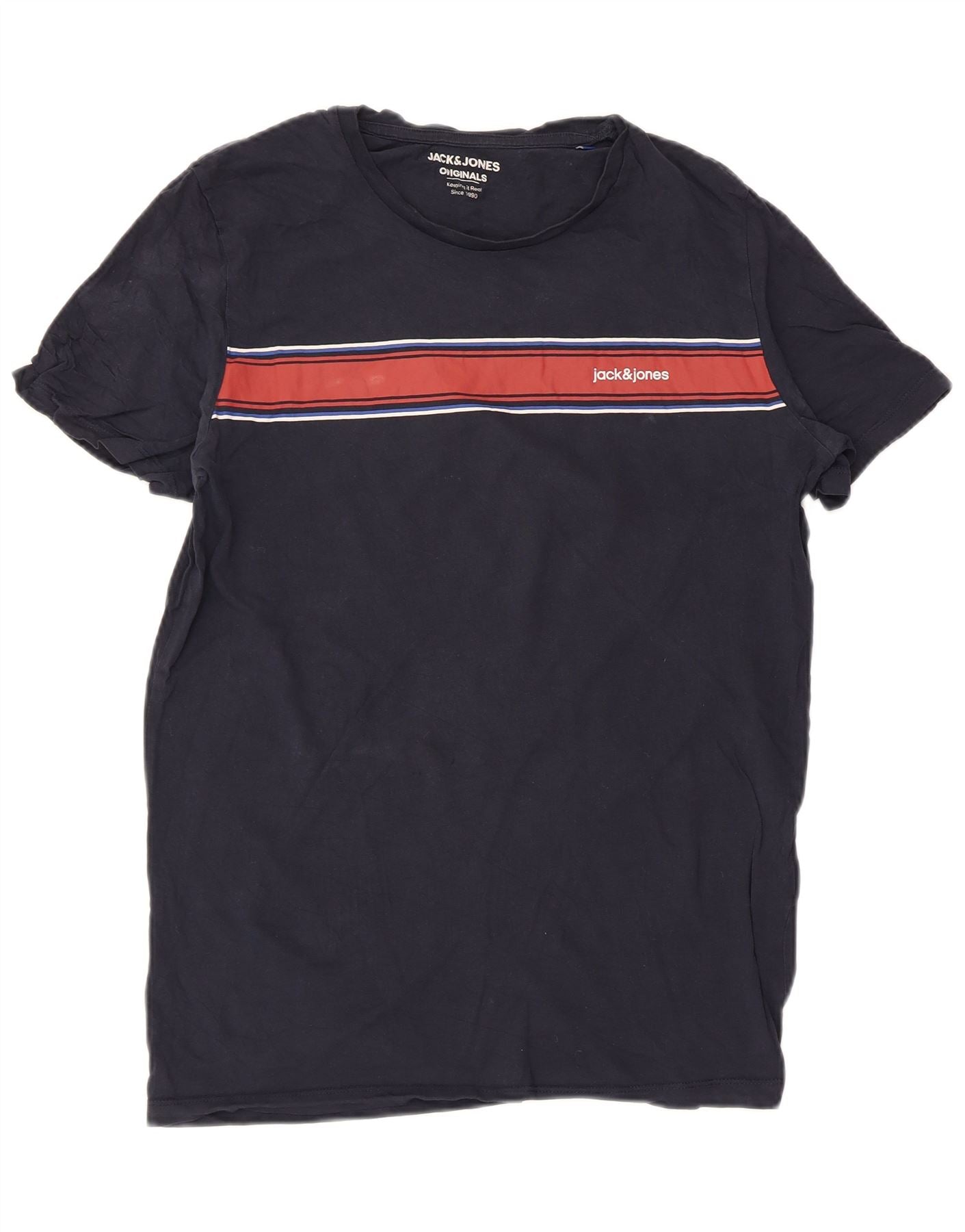 Jack & Jones Herre grafisk T-shirt Top Mellem marineblå stribet bomuld