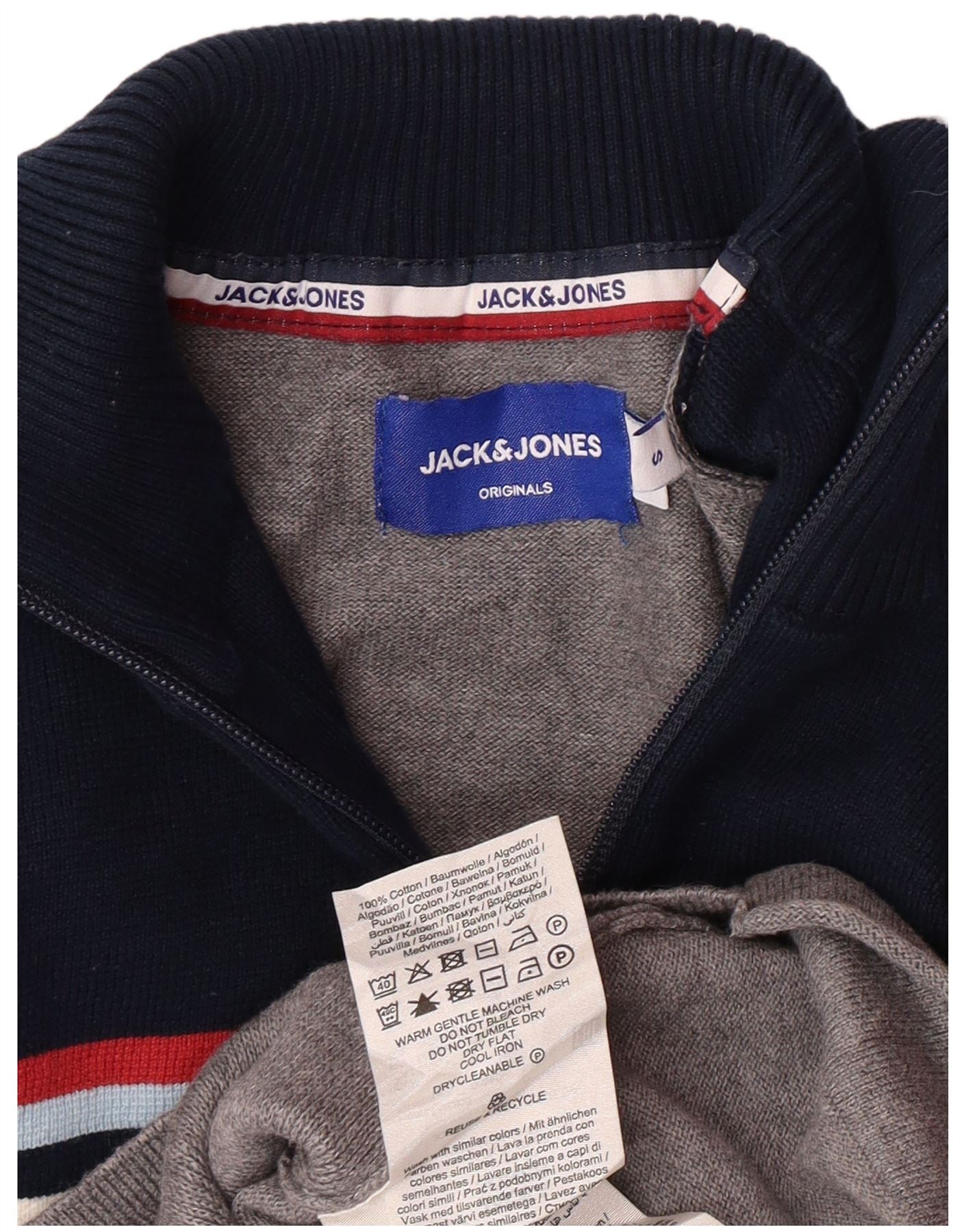 JACK & JONES Herre grafisk lynlås-hals sweater lille grå farveblok