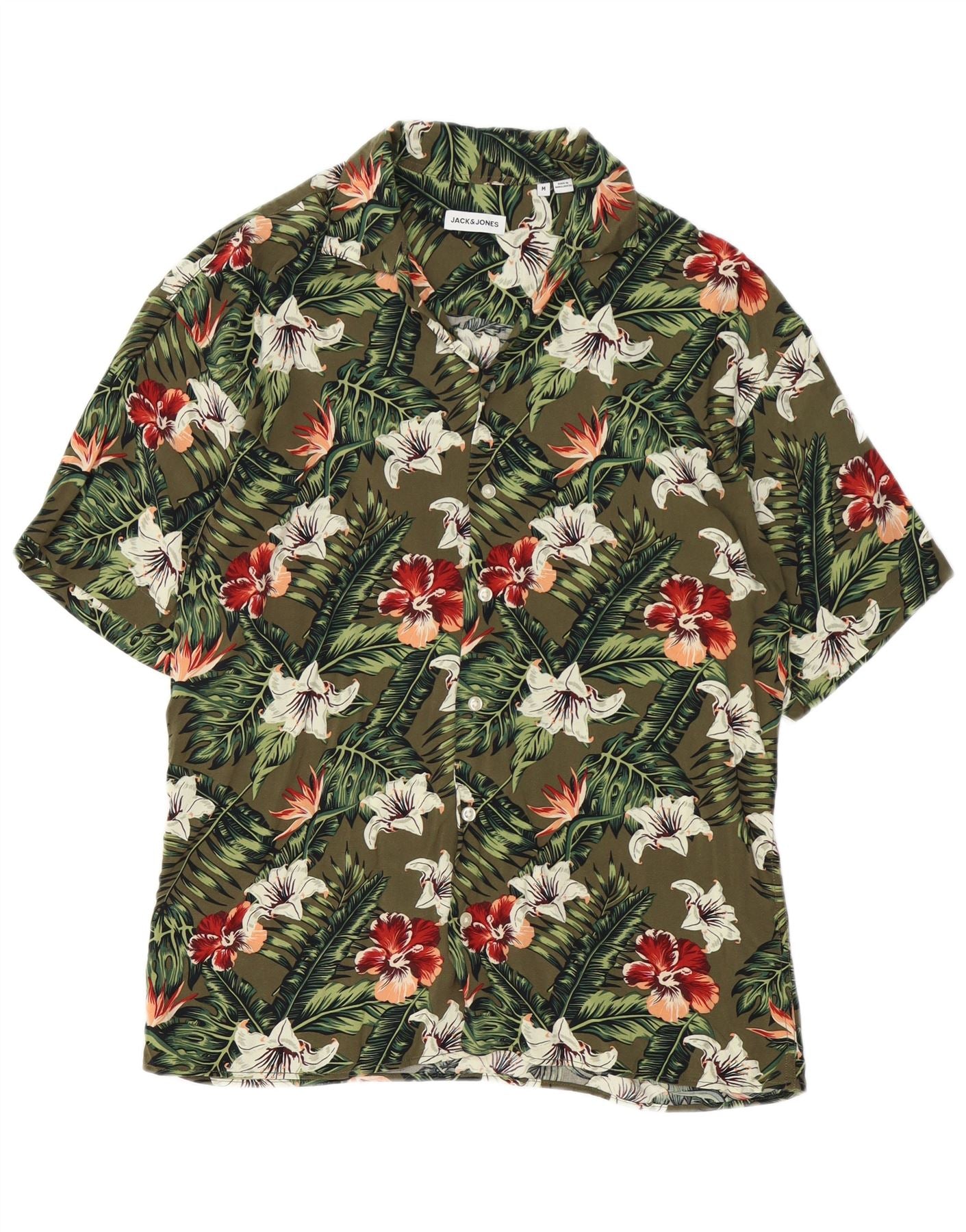 JACK & JONES Kortærmet Herreskjorte Medium Khaki Floral Viscose