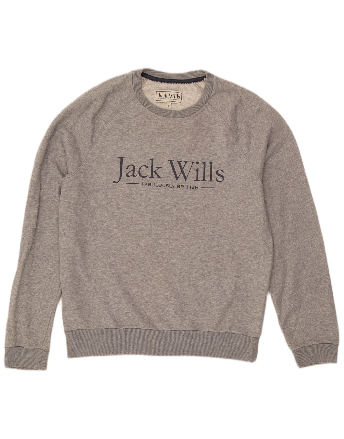 JACK WILLS Herre Grafisk Sweatshirt Jumper Stor Grå Bomuld