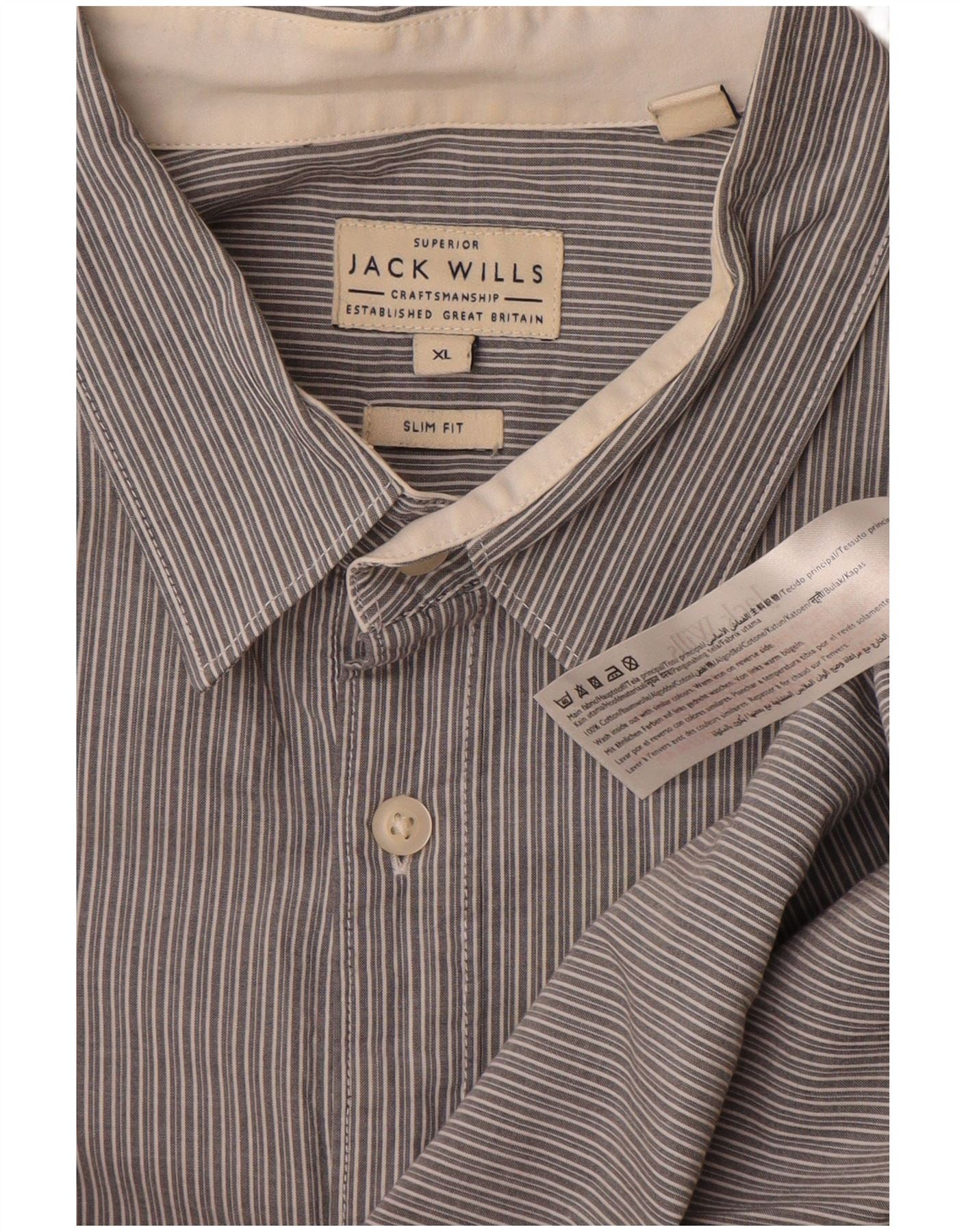 JACK WILLS Herre Slim Fit skjorte XL Grå nålestribet bomuld