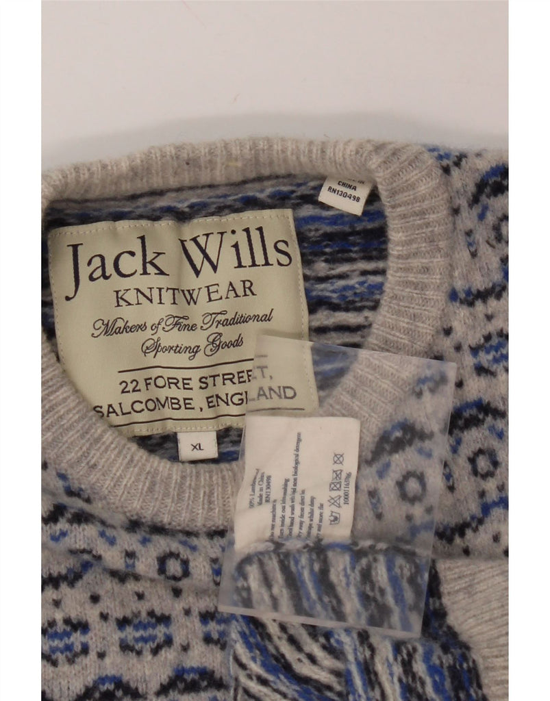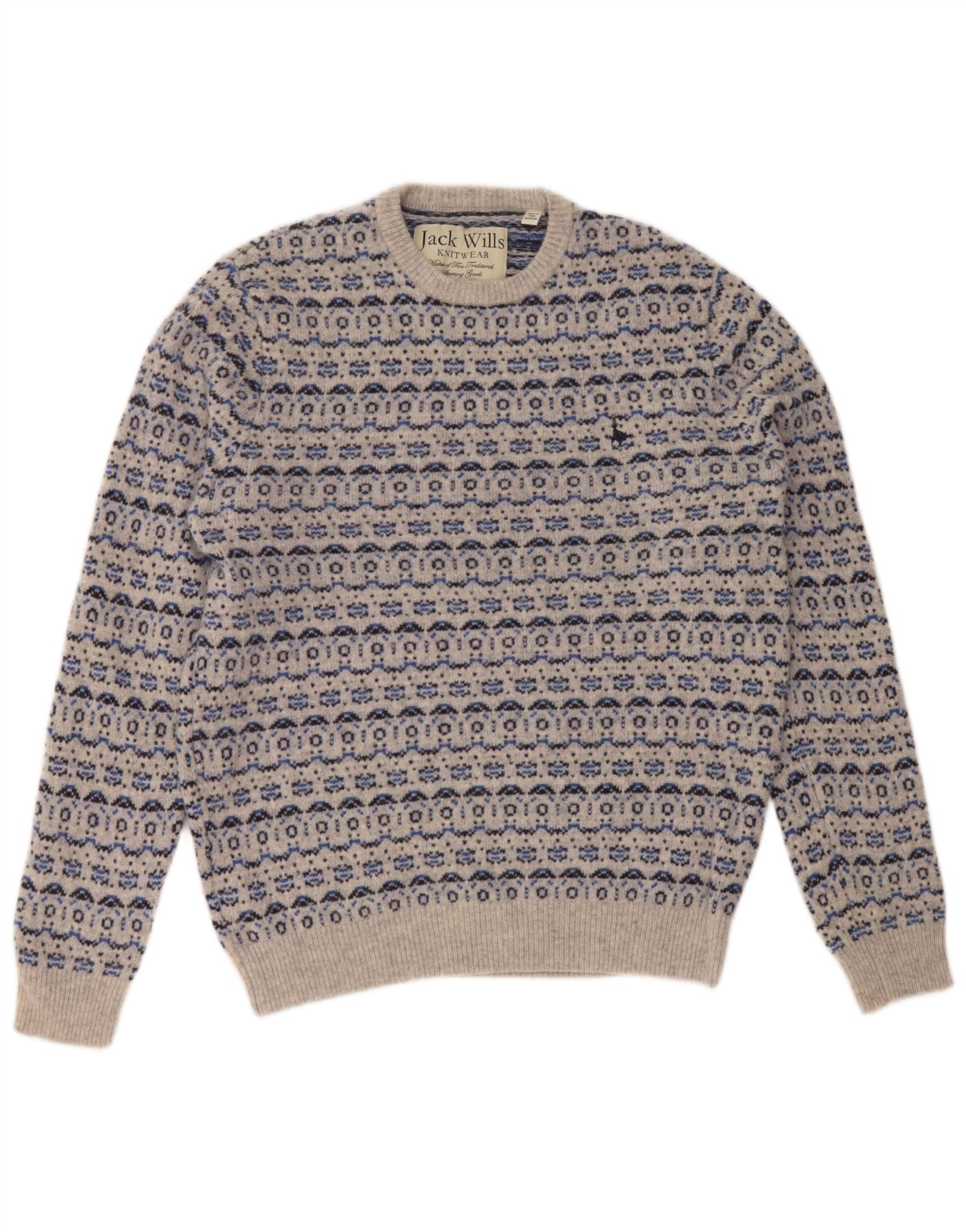 JACK WILLS Womens Crew Neck Jumper Sweater UK 18 XL Grey Fair Isle