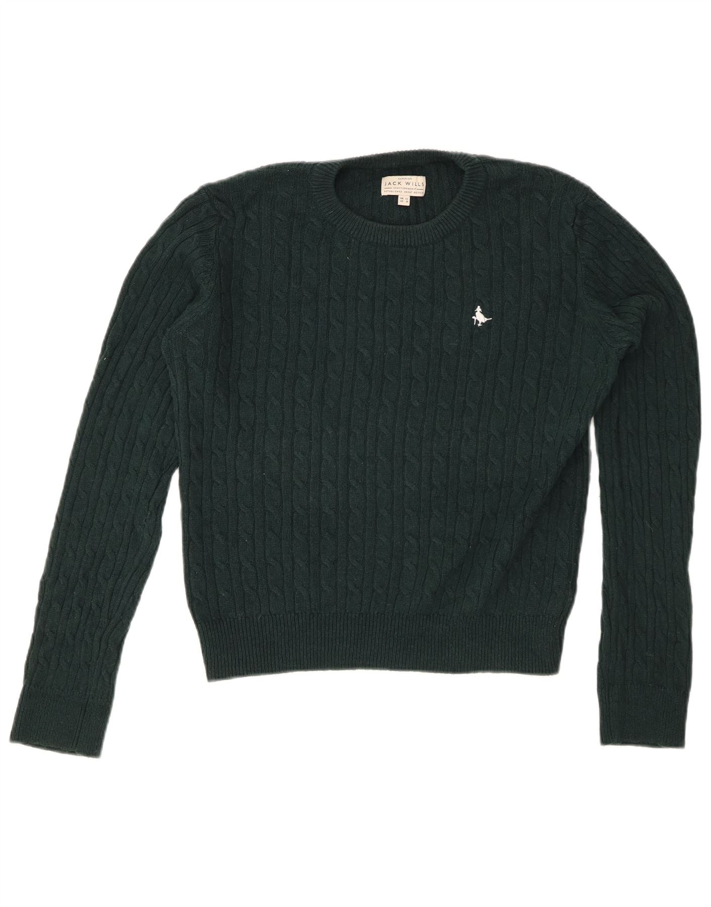 JACK WILLS Dame Crop Crew Neck Jumper Sweater UK 12 Medium Green Wool