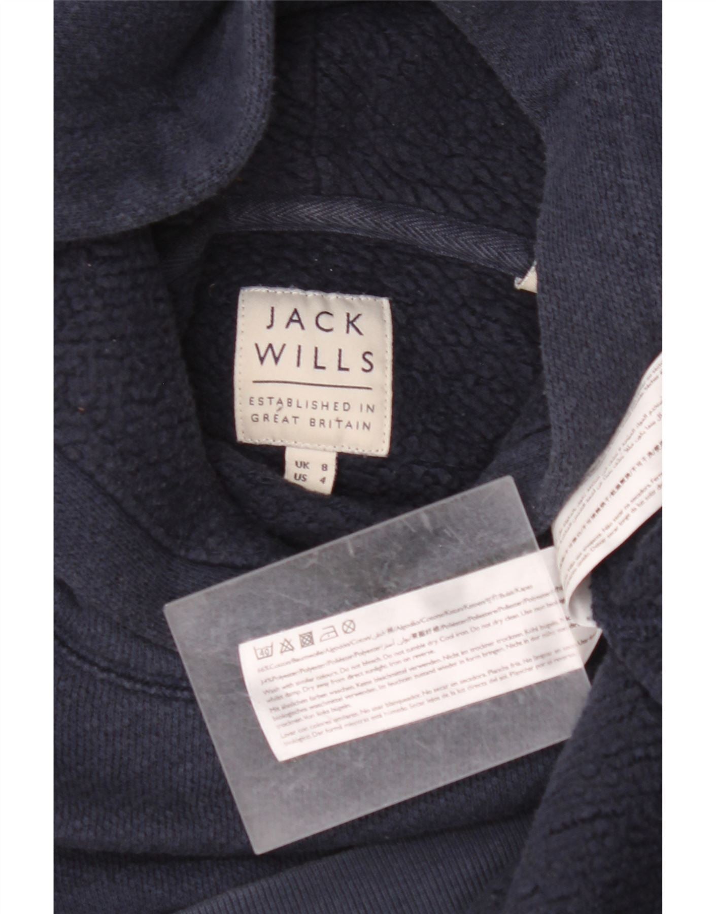 JACK WILLS Dame Crop Oversized Hoodie Jumper UK 8 Small Navy Blue Cotton