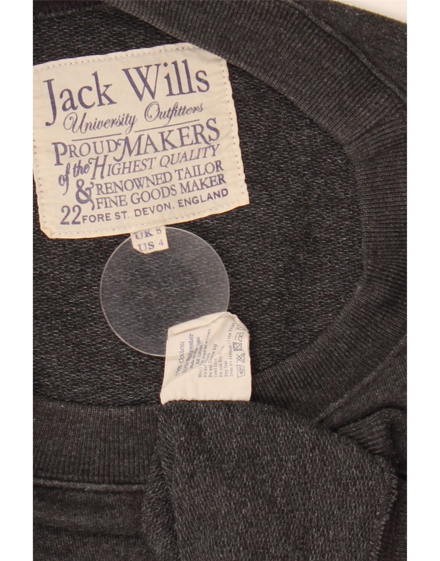 JACK WILLS Dame Grafisk Oversized Sweatshirt Jumper UK 8 Lille Grå