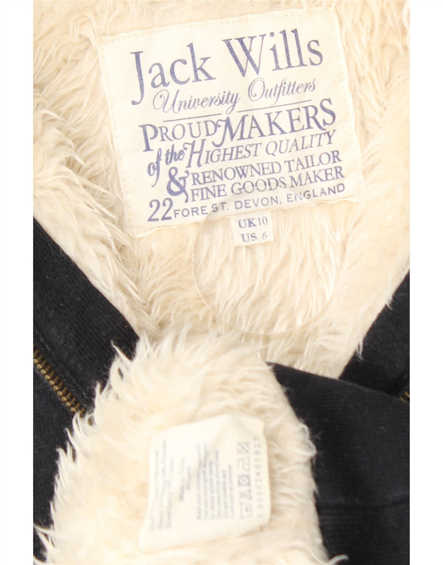 JACK WILLS Dame Grafisk Sherpa Hættetrøje Sweater med lynlås UK 10 Lille Sort
