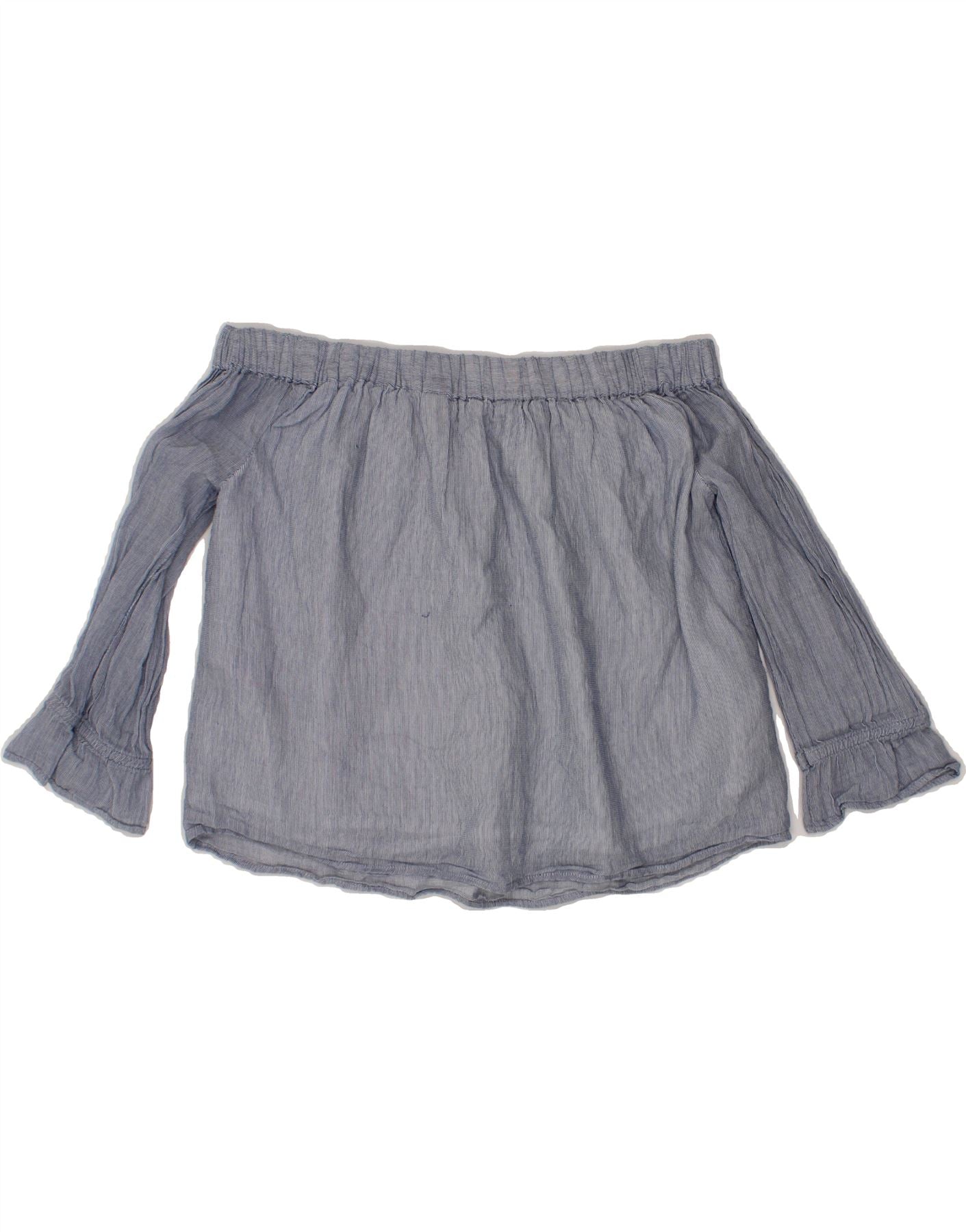 JACK WILLS Womens Off Shoulder Top UK 8 Small Blue Cotton