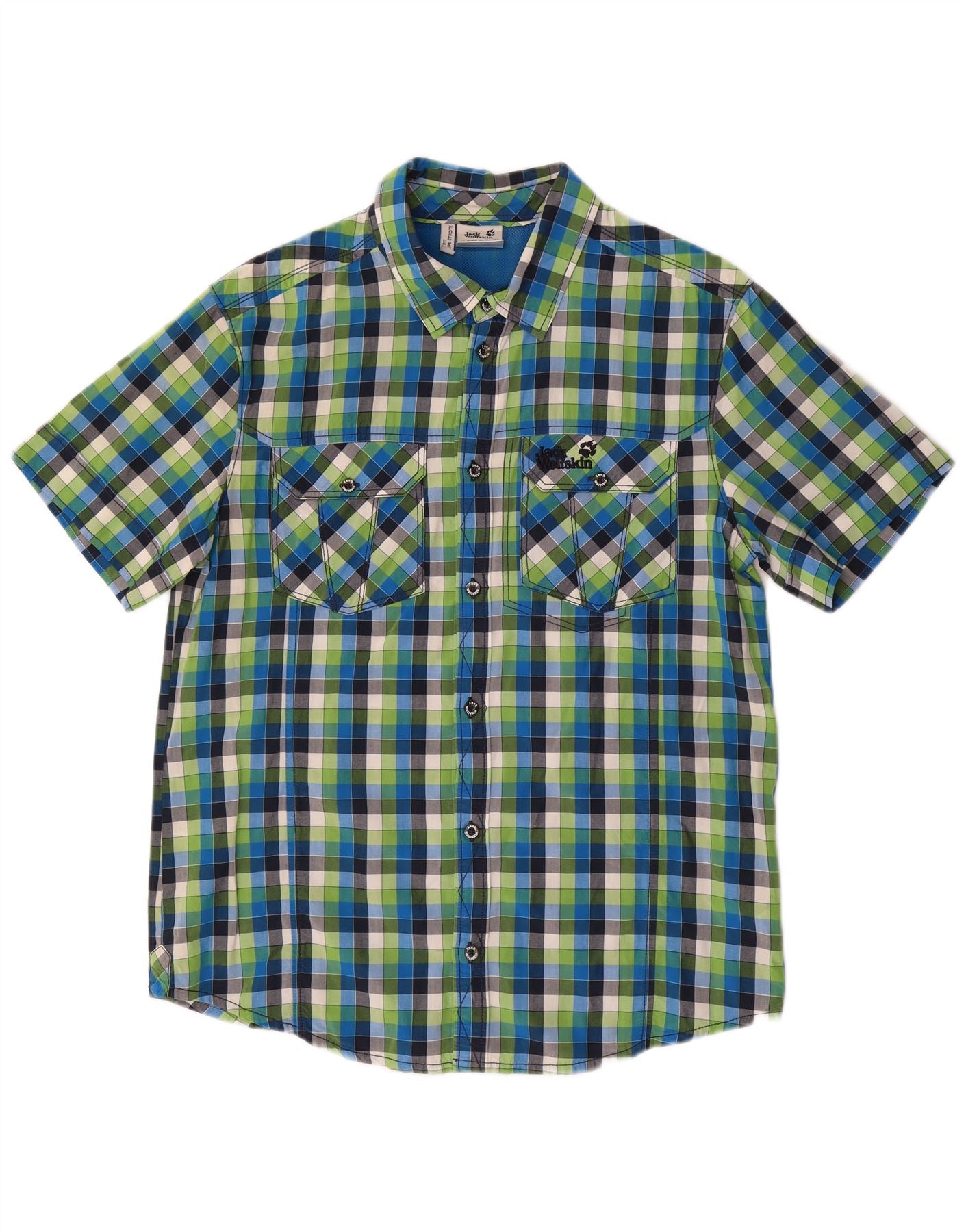 JACK WOLFSKIN Kortærmet herreskjorte UK 40/42 Stor blå ternet bomuld