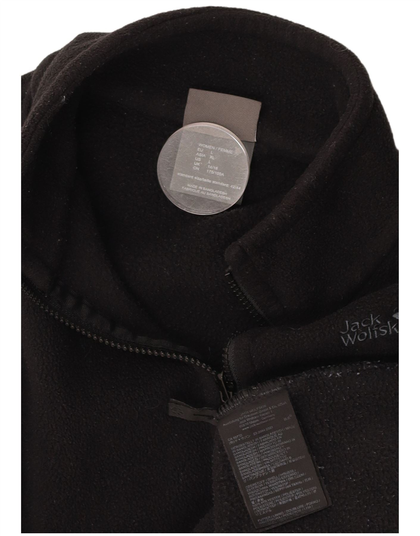JACK WOLFSKIN Womens Fleece Jacket UK 14/16 Large Black Polyester