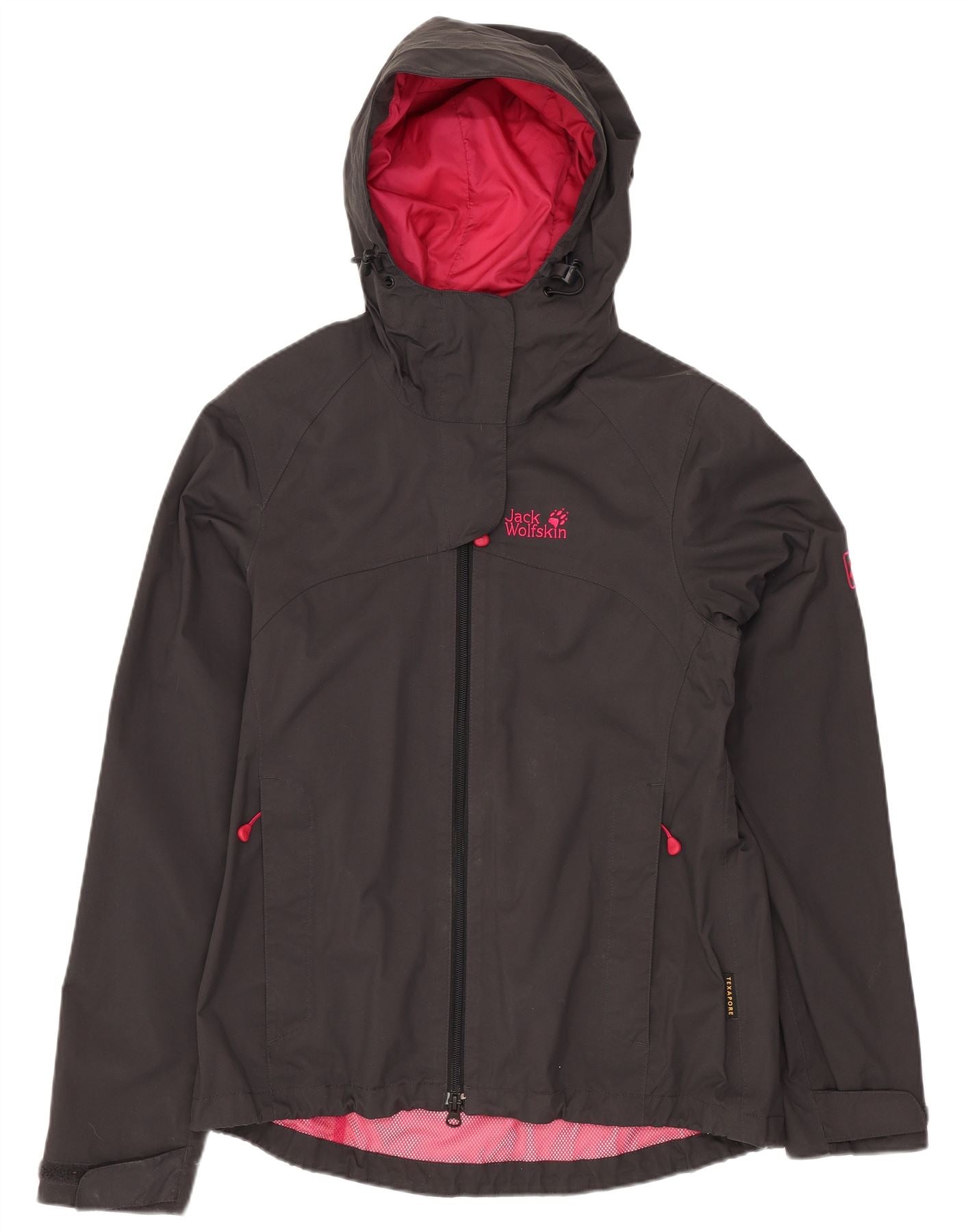 Jack Wolfskin Regnjakke med hætte til kvinder UK 8/10 Lille grå polyamid