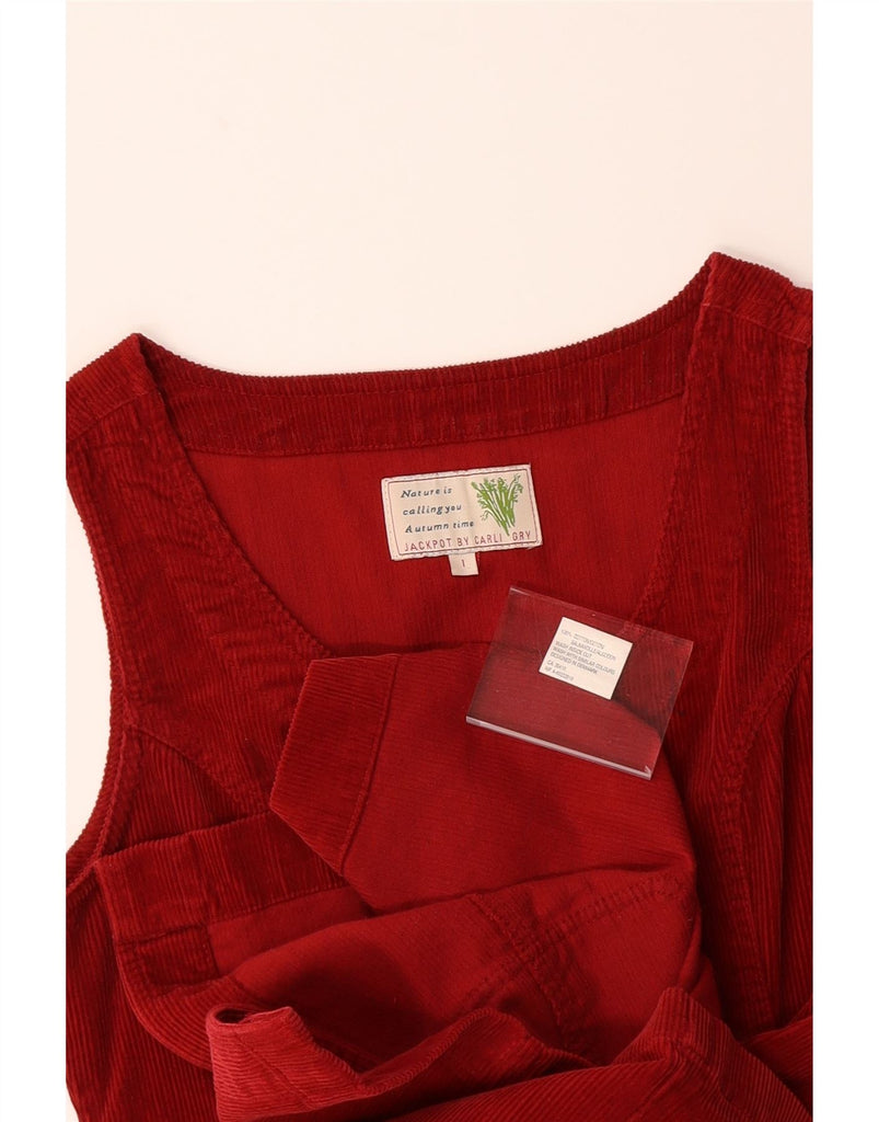 - AI Description: This Vintage women’s A-line dress is crafted from rich red corduroy, offering a soft, tactile finish. The sleeveless design features a classic round neck, providing a clean silhouette. A full button-up front adds vintage charm, complemented by practical pockets. The A-line cut ensures a comfortable regular fit, embracing a timeless retro aesthetic. Its pure cotton composition ensures breathability and comfort for everyday wear. The durable corduroy fabric gives it a distinctive, heritage feel.