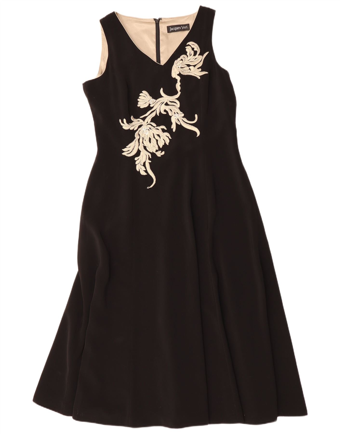 JACQUES VERT Dame ærmeløs Maxikjole UK 14 Stor sort polyester
