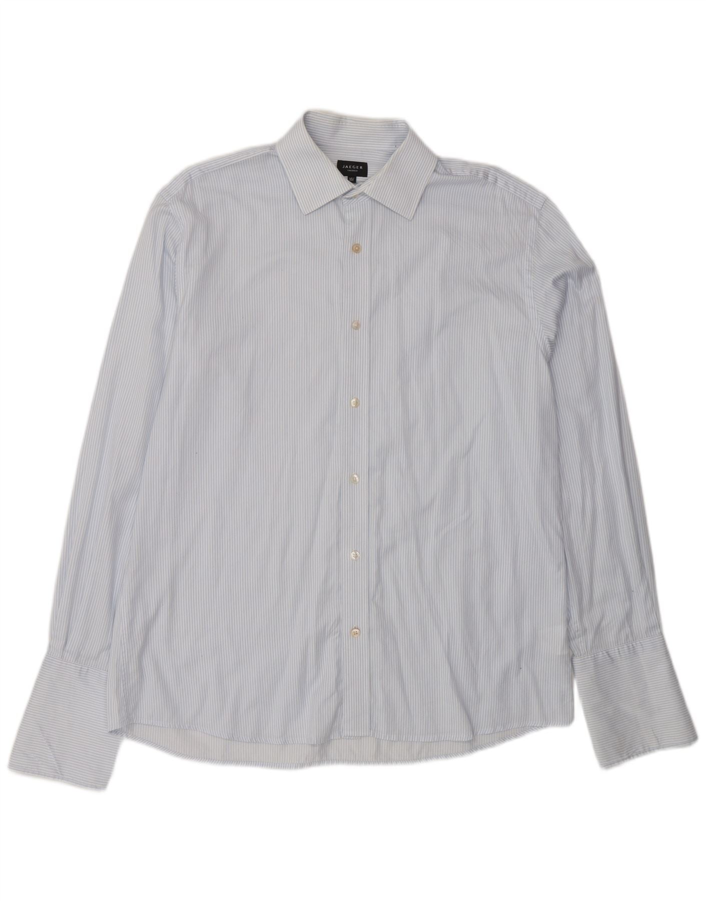 JAEGER Mens Tailored Formal Shirt Size 16 1/2 Large Blue Pinstripe Cotton