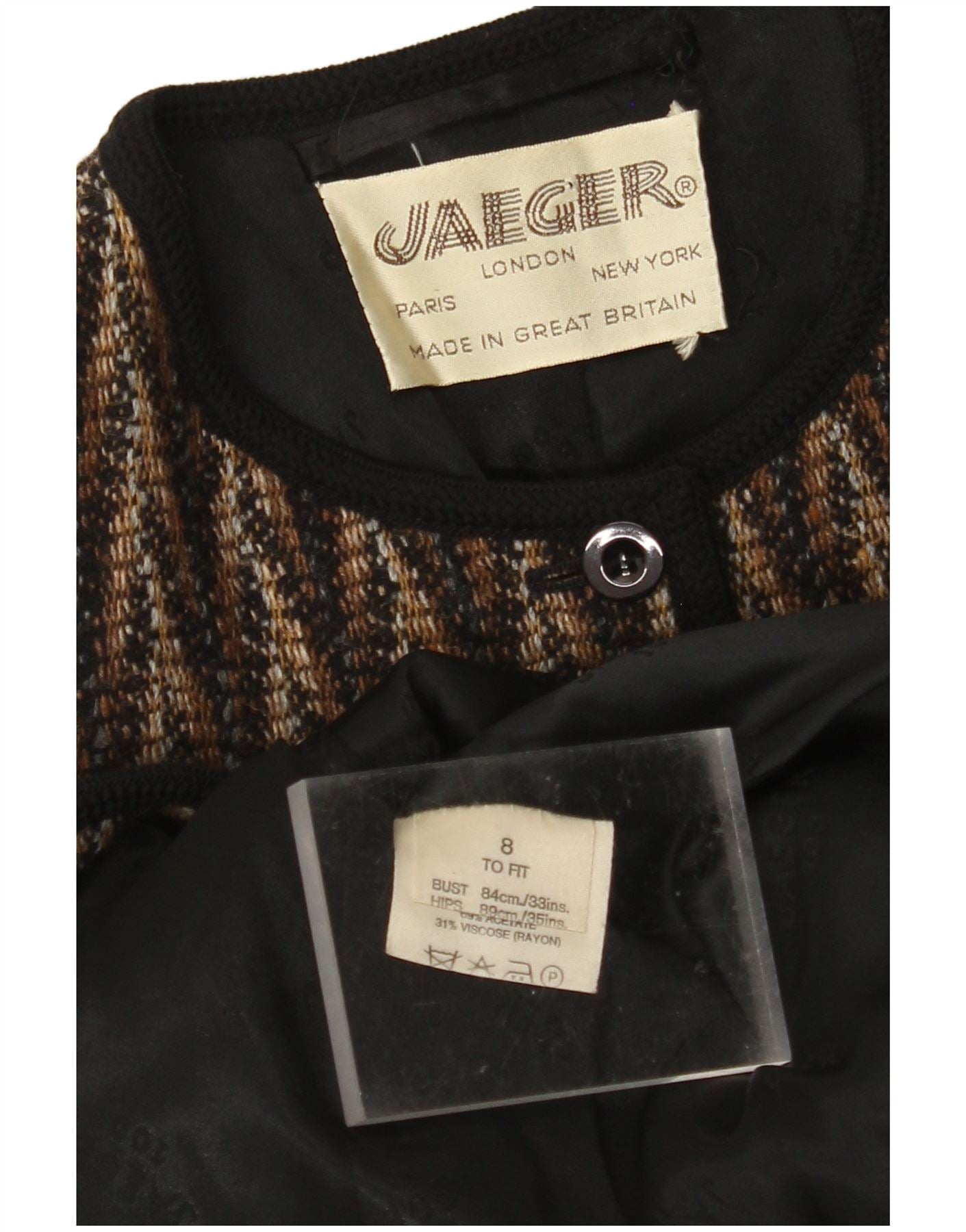 JAEGER Dame 7 knapper Blazer Jacket UK 8 Small Brown Chevron Wool