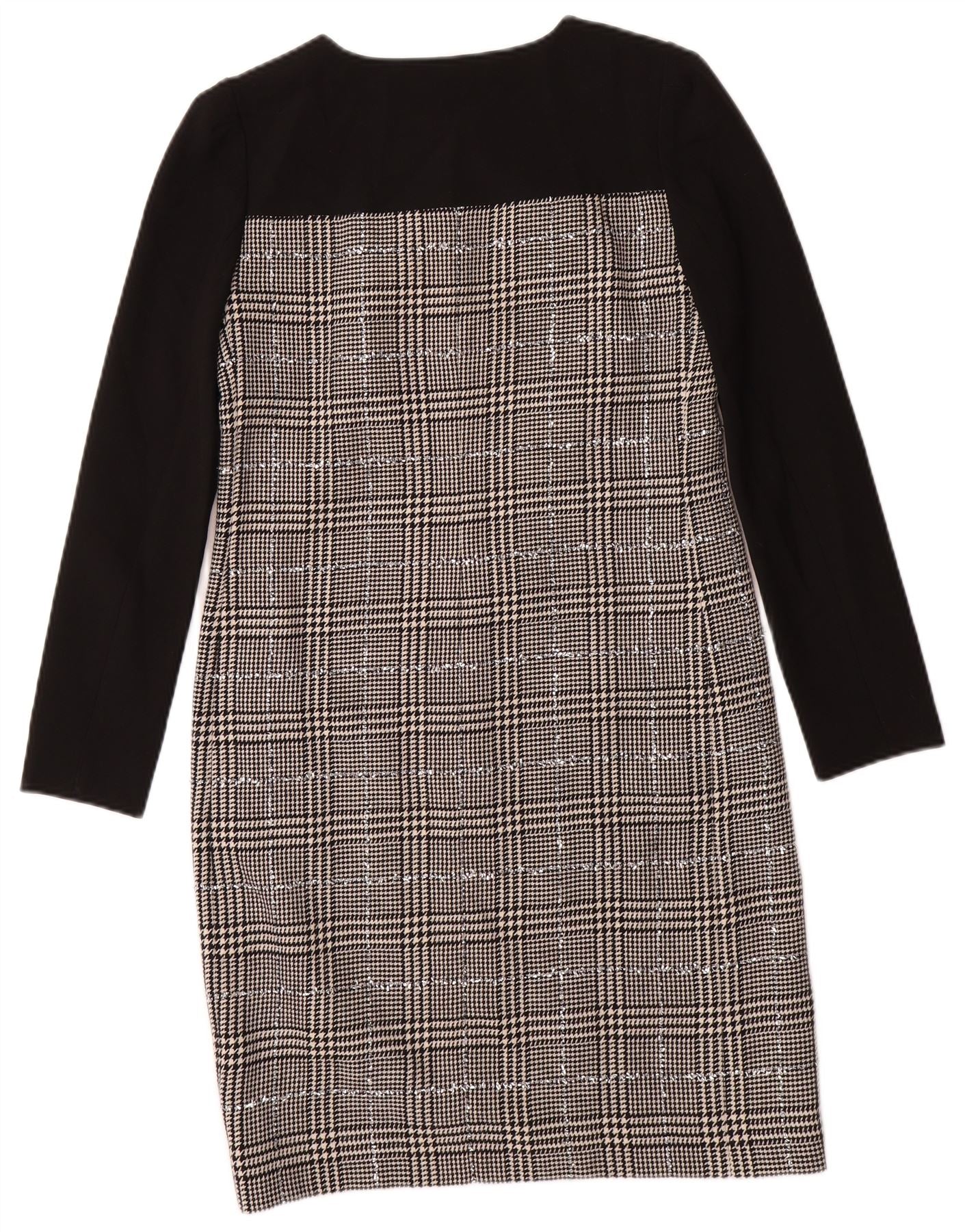 JAEGER Langærmet Skedekjole til kvinder UK 8 Small Black Houndstooth Uld