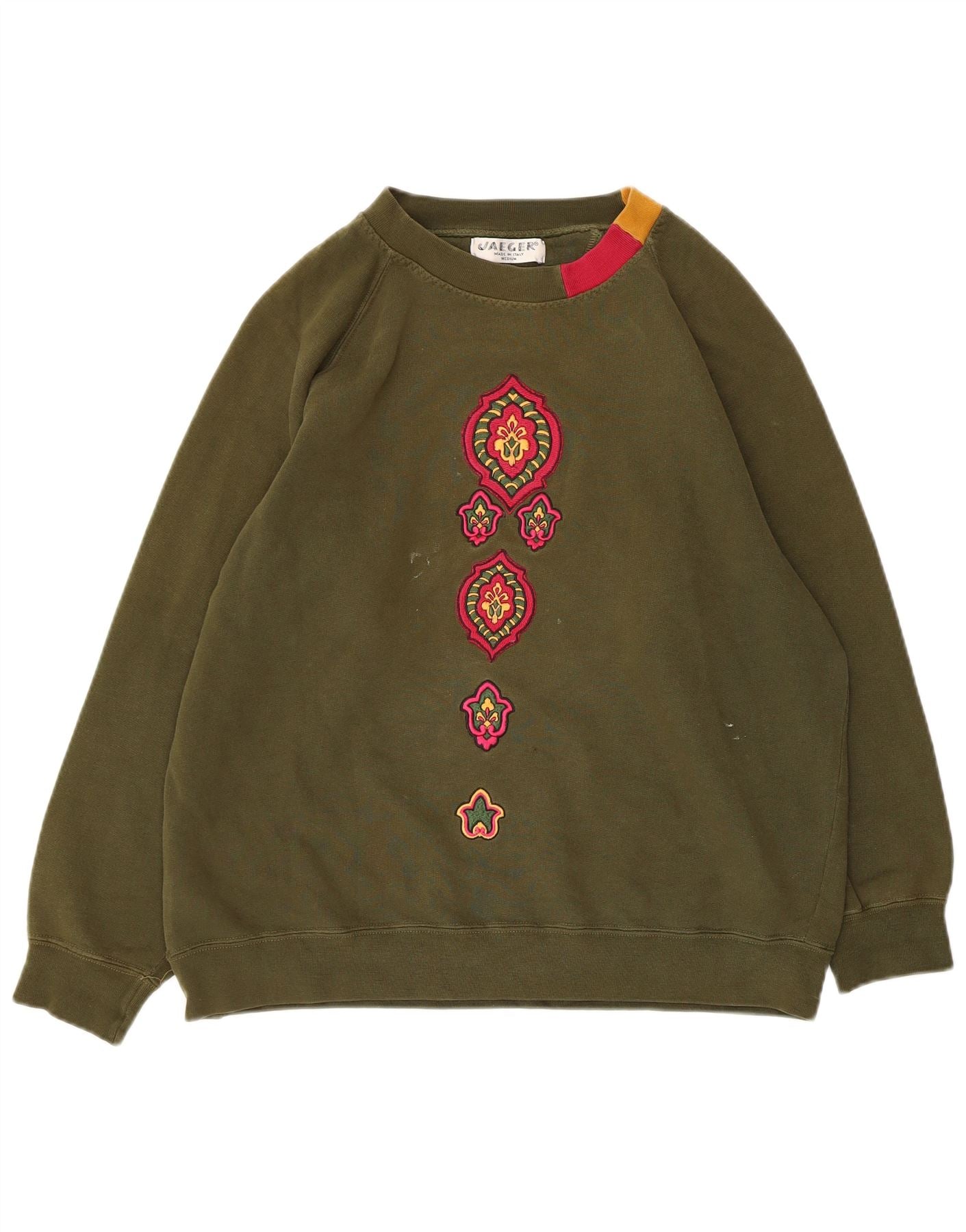 Jaeger Womens Oversized Sweatshirt Jumper UK 12 Medium Khaki Blomsterbomuld