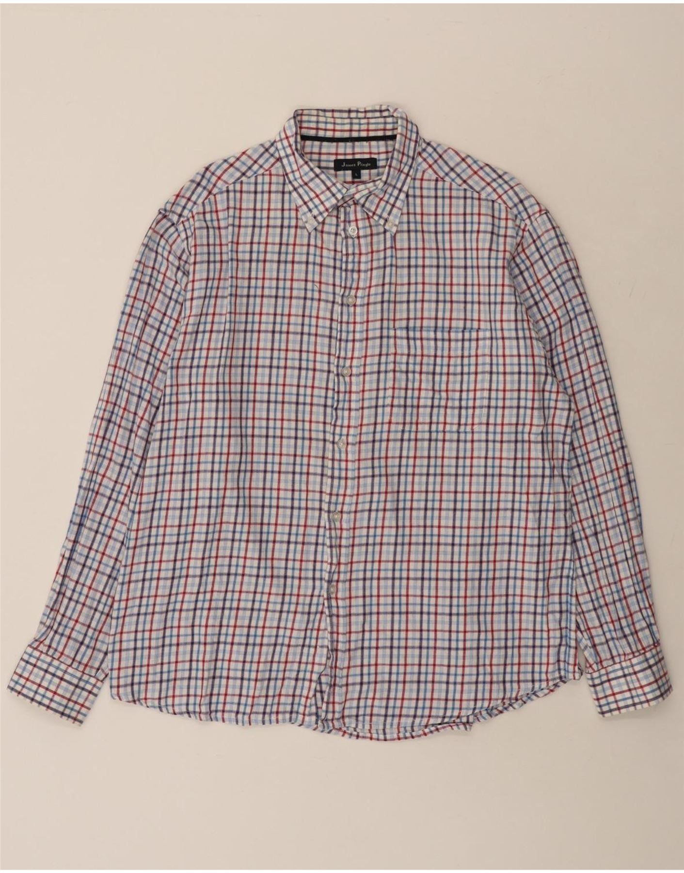 JAMES PRINGLE Herre flannelskjorte Stor blå ternet bomuld