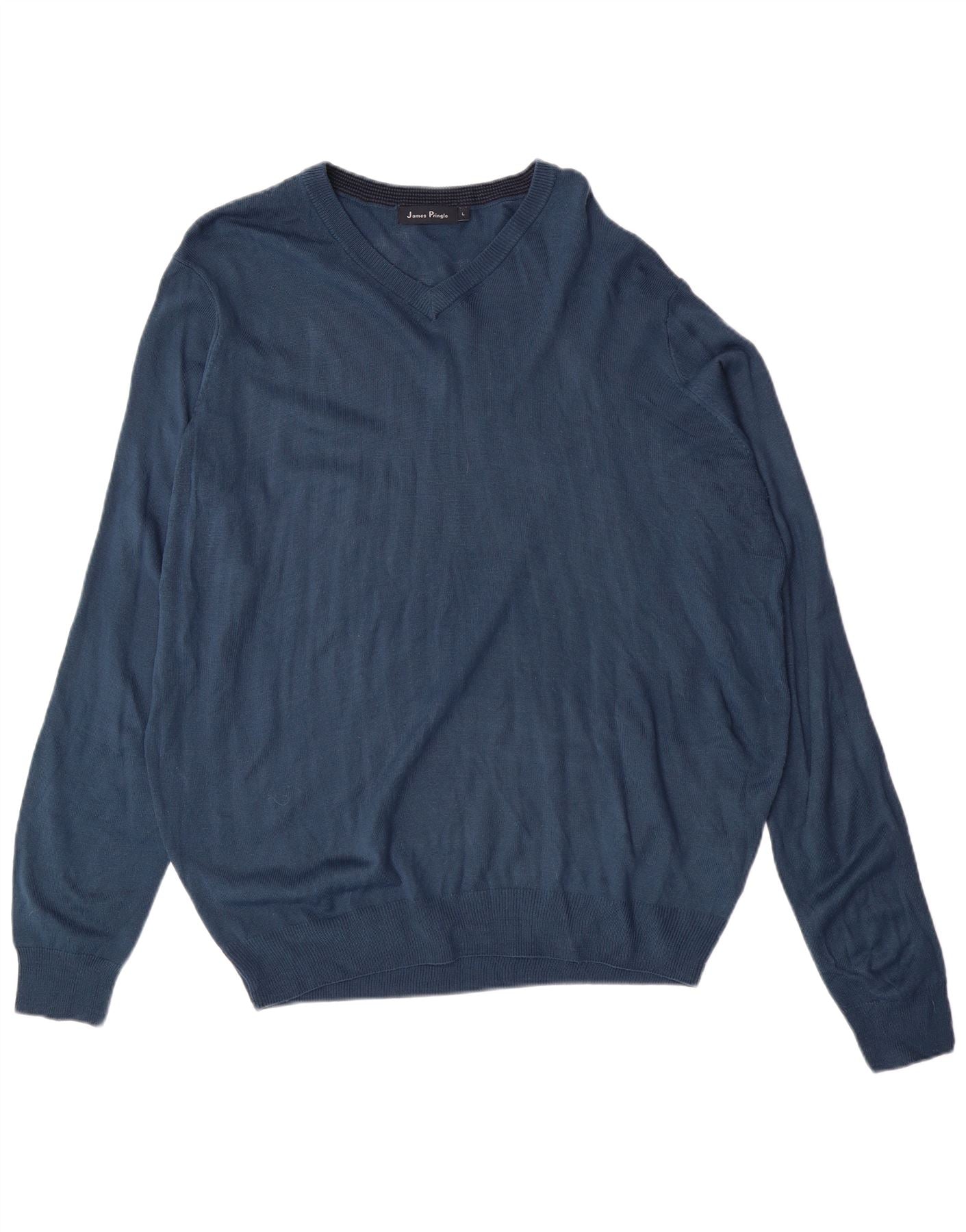 JAMES PRINGLE Mens V-Neck Jumper Sweater Large Blue Acrylic