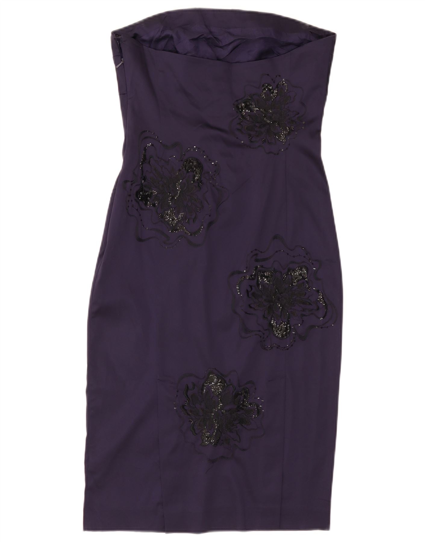 JANE NORMAN Dame Stropløs Bodycon Kjole UK 12 Medium Purple Floral
