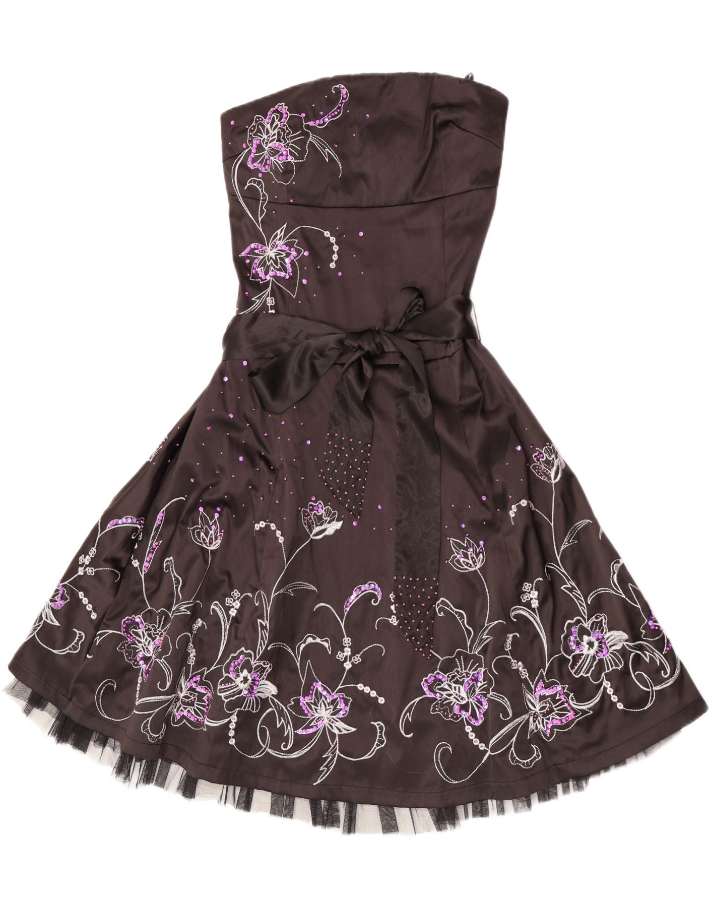 Jane Norman Dame Stropløs Kjole UK 12 Medium Black Floral Polyester