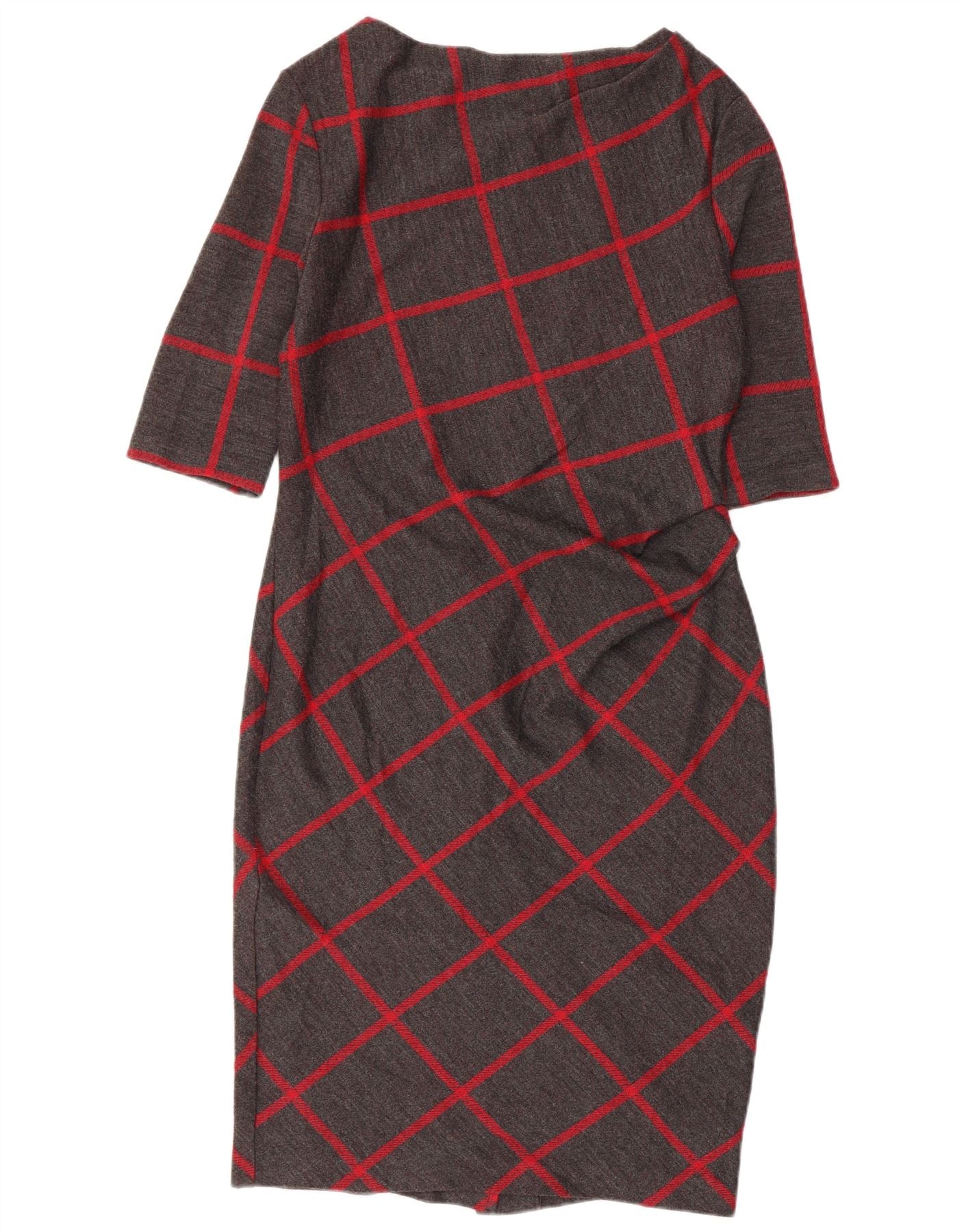 JASPER CONRAN Womens 3/4 Sleeve Sheath Dress UK 14 Medium Grey Check