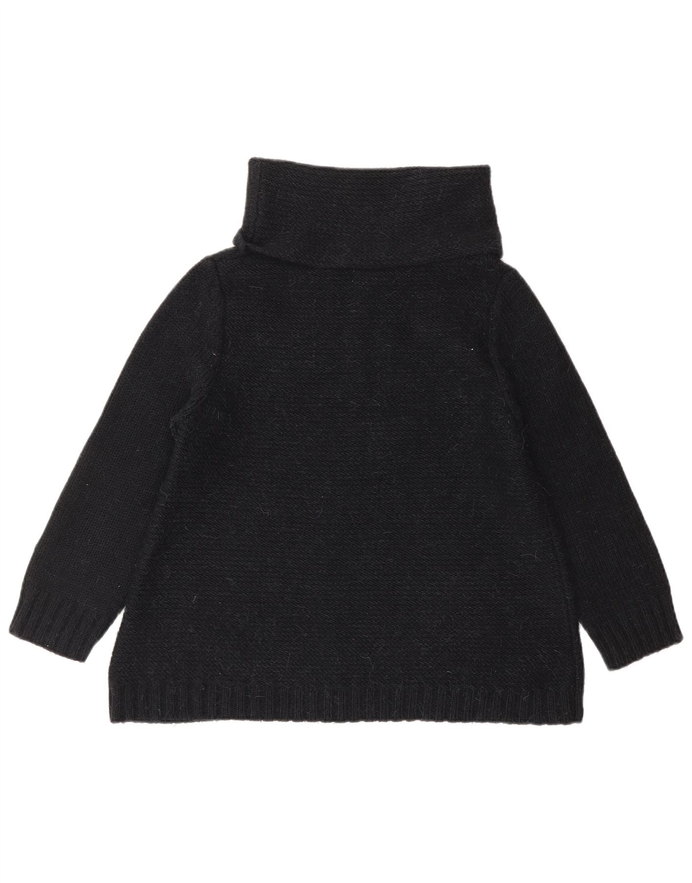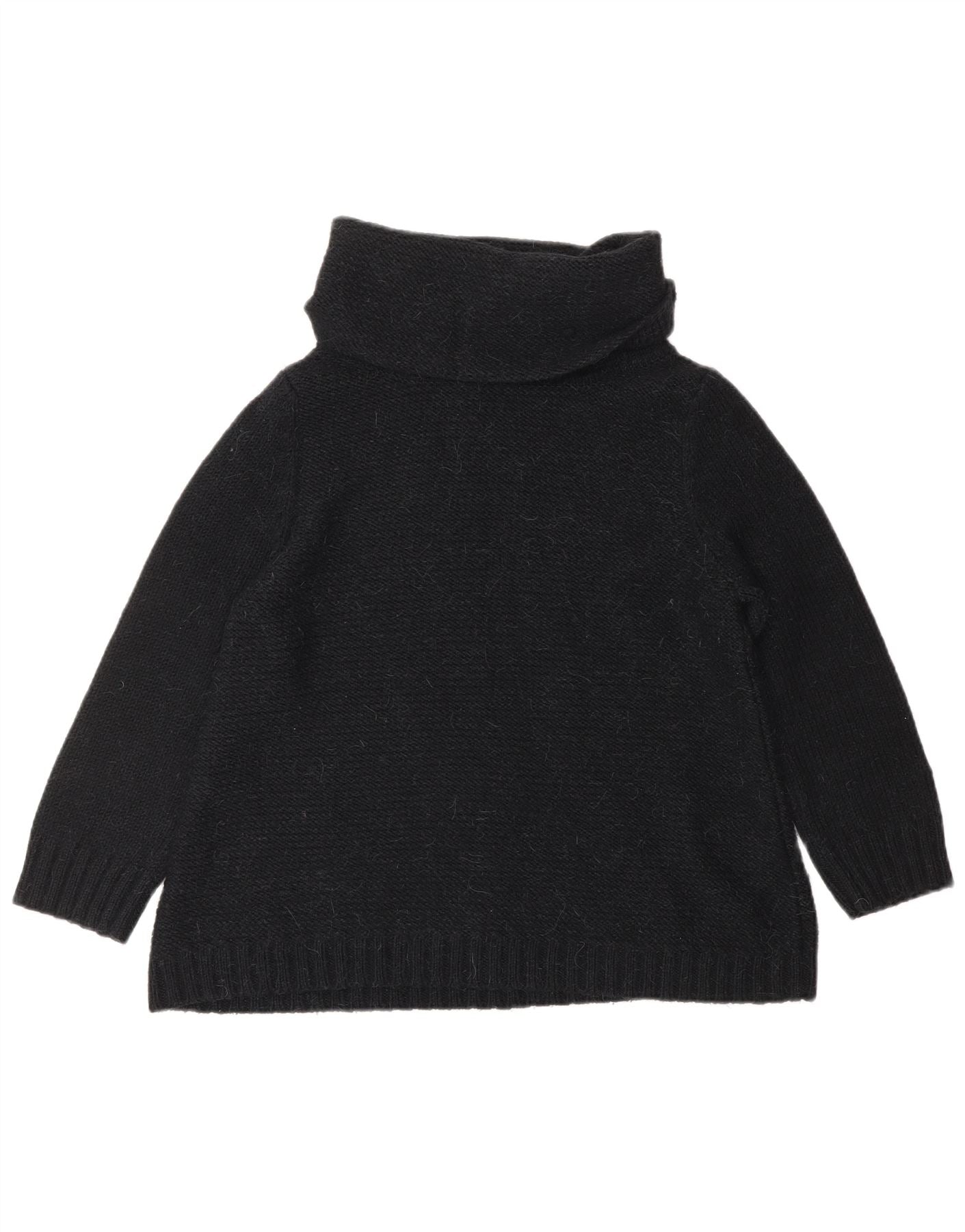 JIGSAW Womens Crop 3/4 Sleeve Roll Neck Jumper Sweater UK 14 Large Black