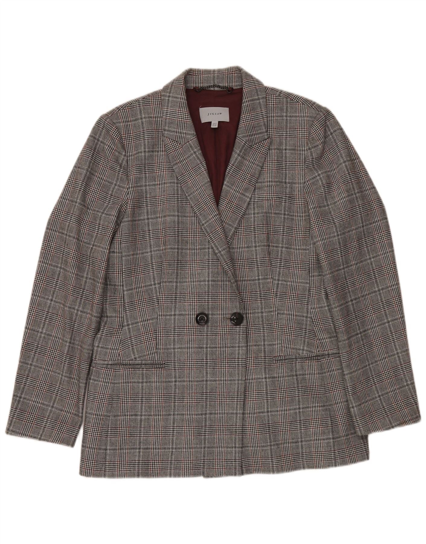 JIGSAW Dame Dobbeltradet Blazer Jacket UK 14 Large Grey Houndstooth