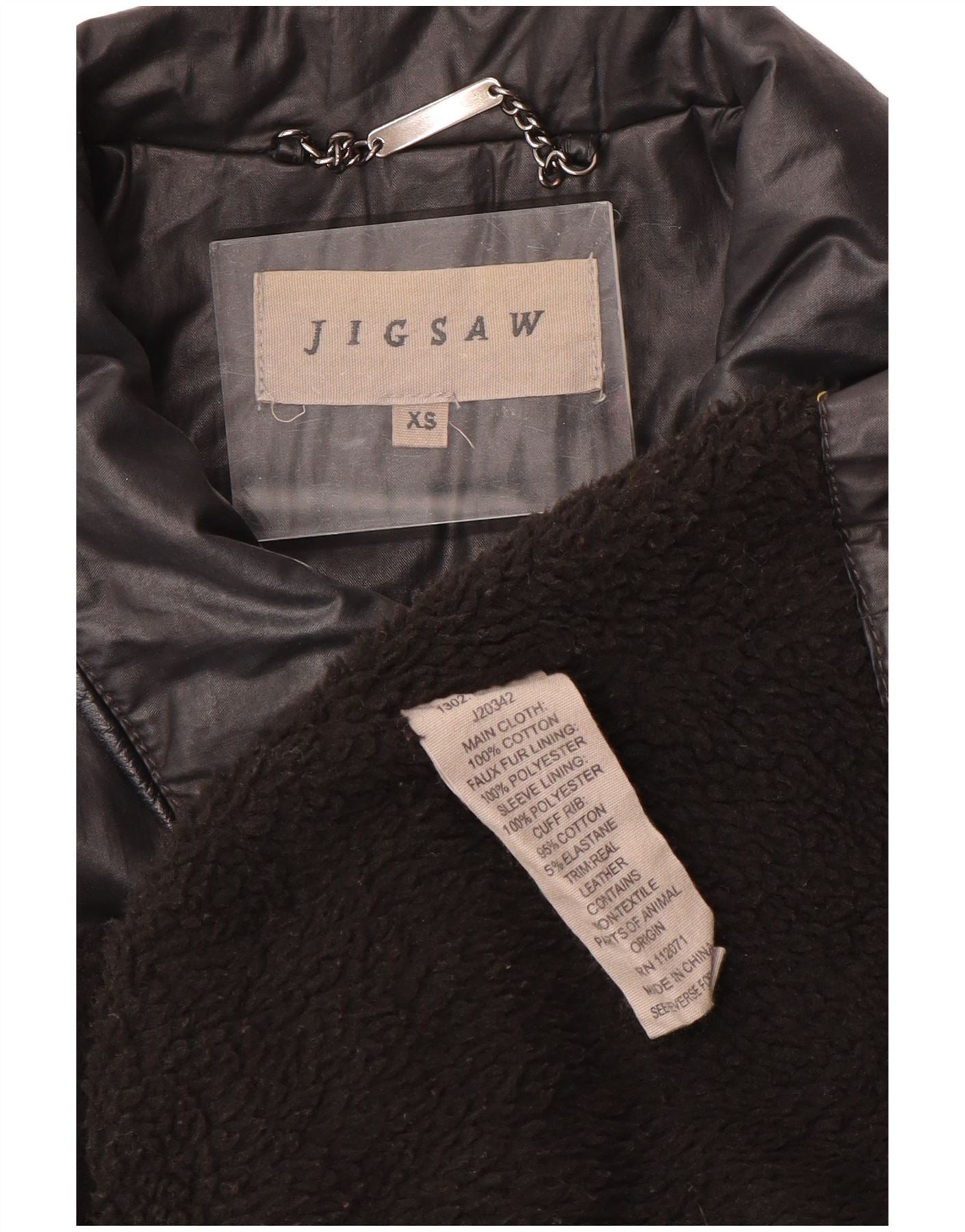 JIGSAW Kvinde militær løs pasform vokset bomuldsjakke UK 6 XS sort bomuld