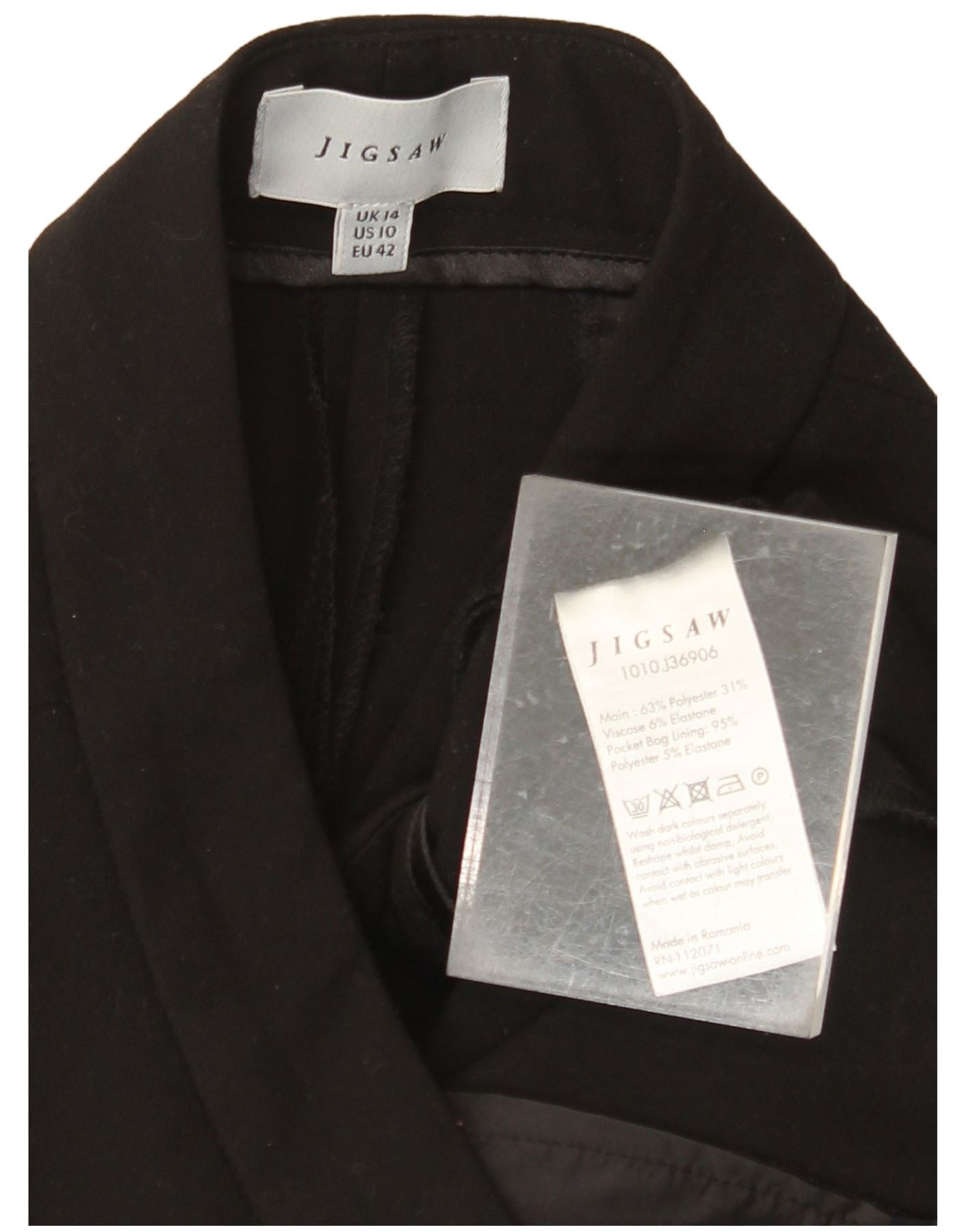 JIGSAW Womens Straight Cropped Trousers UK 14 Large W34 L25 Black