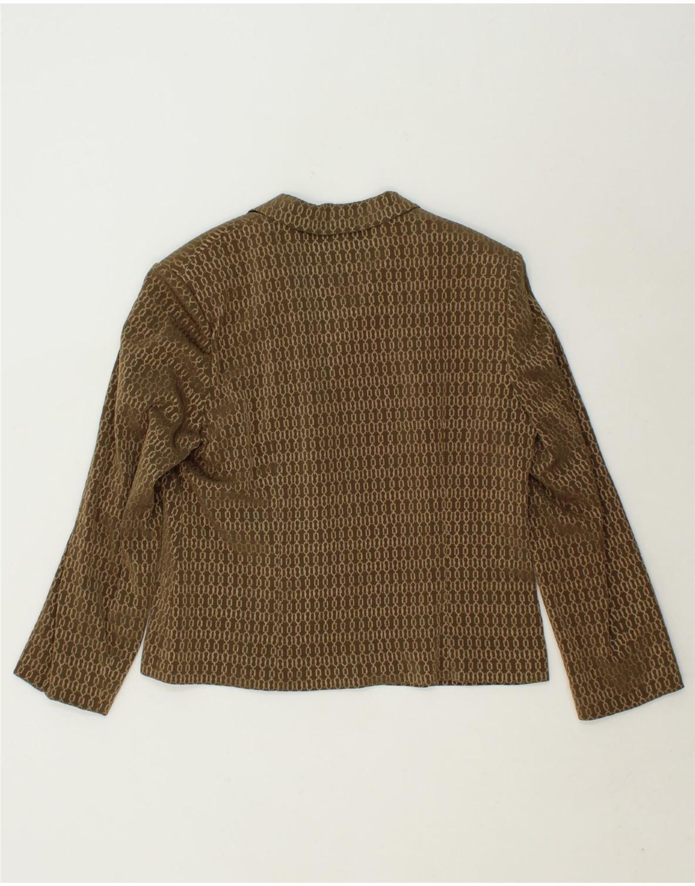 JOHN BENTLEY Womens Abstract Pattern 3 Button Blazer Jacket US 14 XL Brown