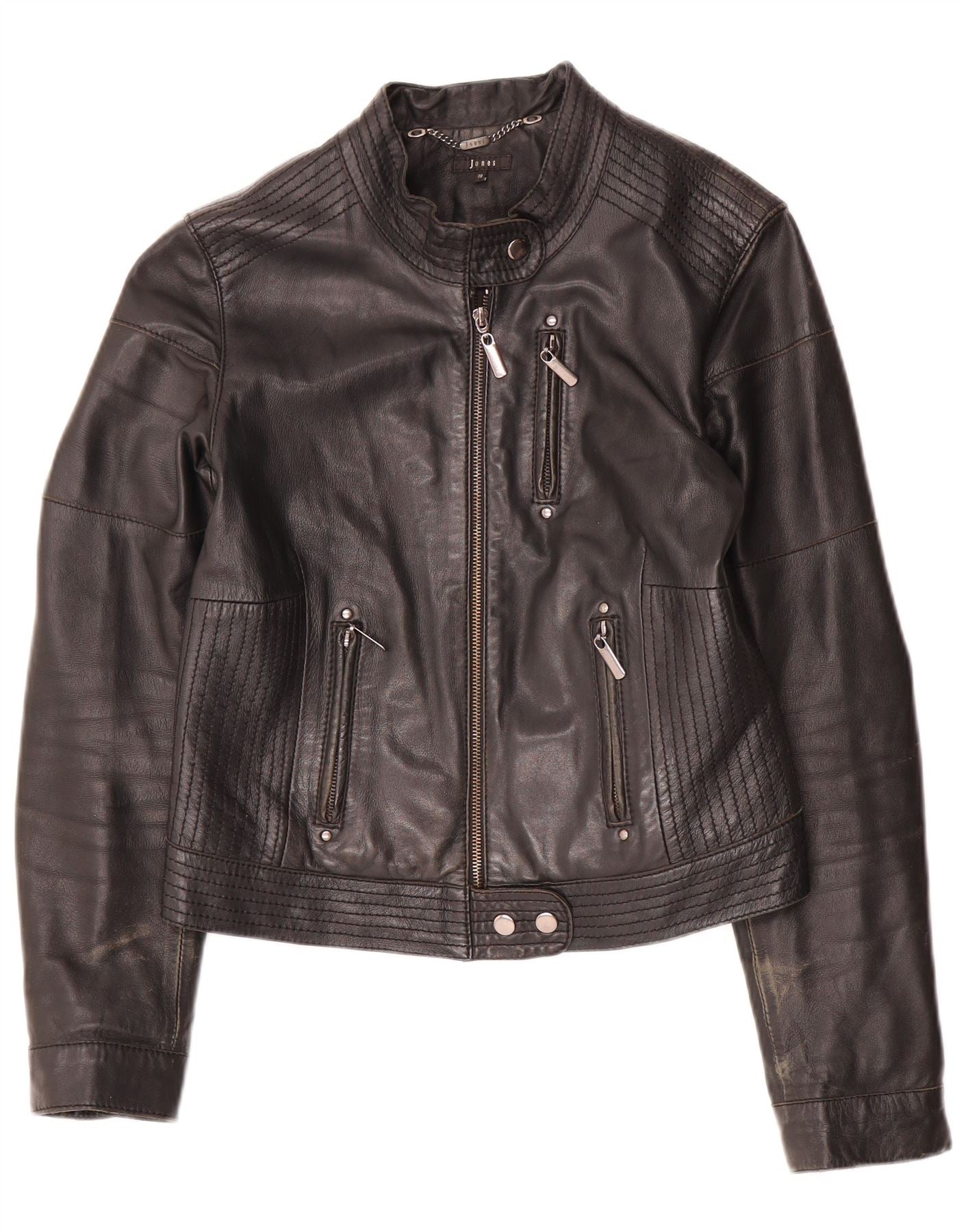 Jones Crop Læder Biker Jacket EU 38 Medium Sort Læder